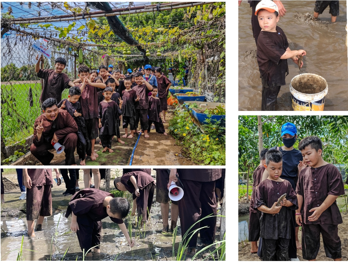 Thiếu nhi làm nông dân.