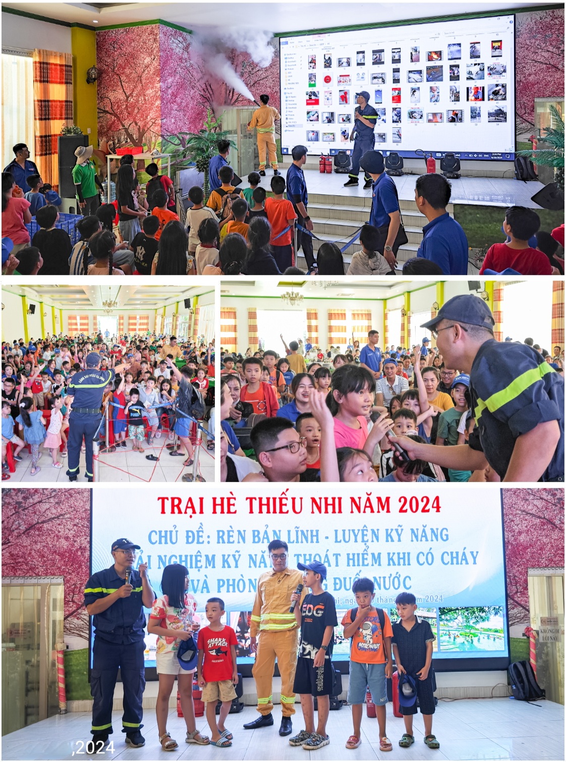 Với chủ đề “Rèn bản lĩnh – Luyện kỹ năng”, trại hè thiếu nhi năm 2024 hướng đến việc trải nghiệm các kỹ năng thoát hiểm khi có cháy và khả năng nhận diện các mối nguy trong sinh hoạt thường ngày tại các hộ gia đình.