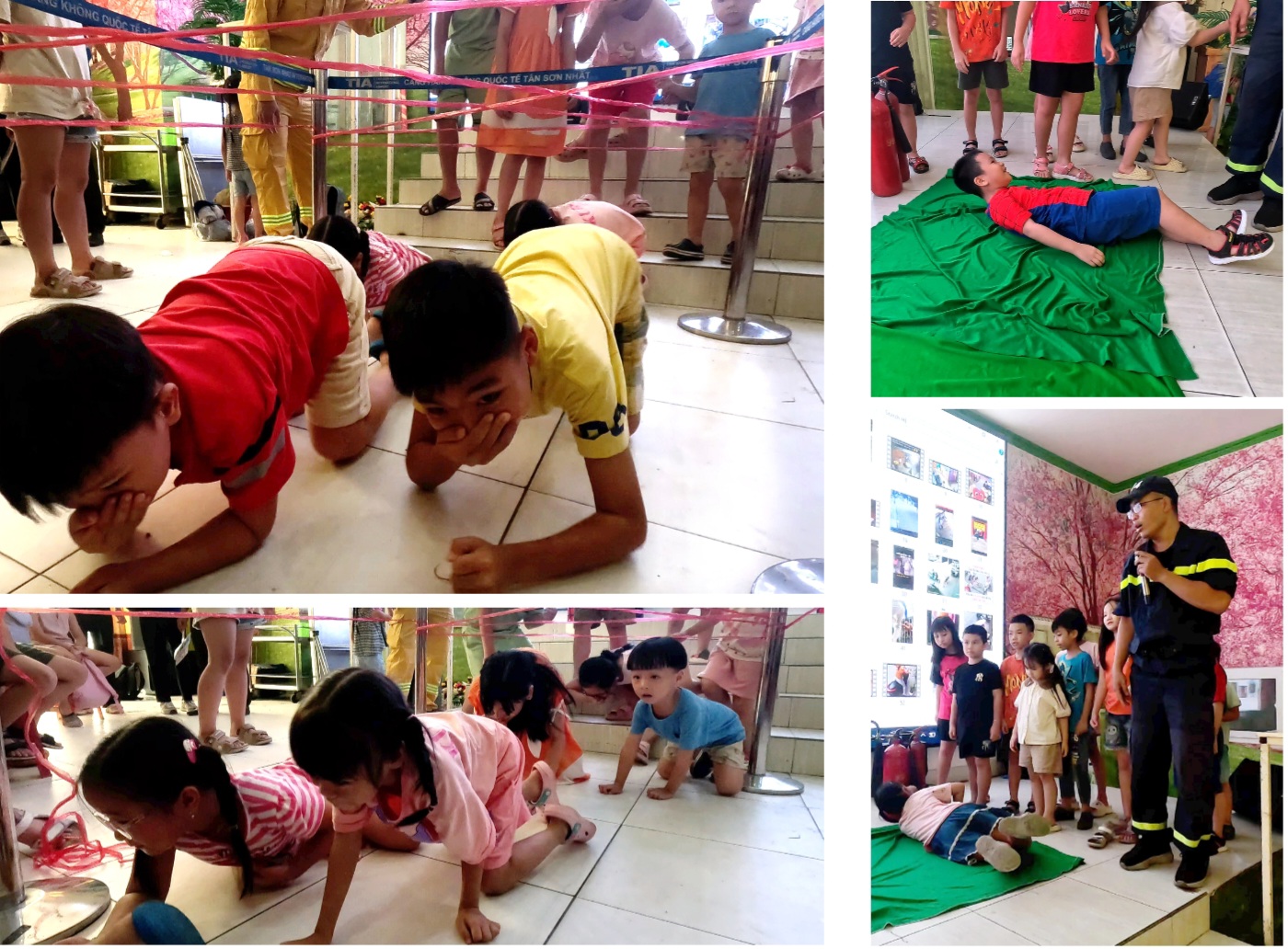 Đặc biệt, các bé từ 9 tuổi trở lên đã được trực tiếp thực hành sử dụng bình chữa cháy dưới sự giám sát của lực lượng chữa cháy chuyên ngành CATP và lực lượng chữa cháy cấp cơ sở Cảng HKQT Tân Sơn Nhất.