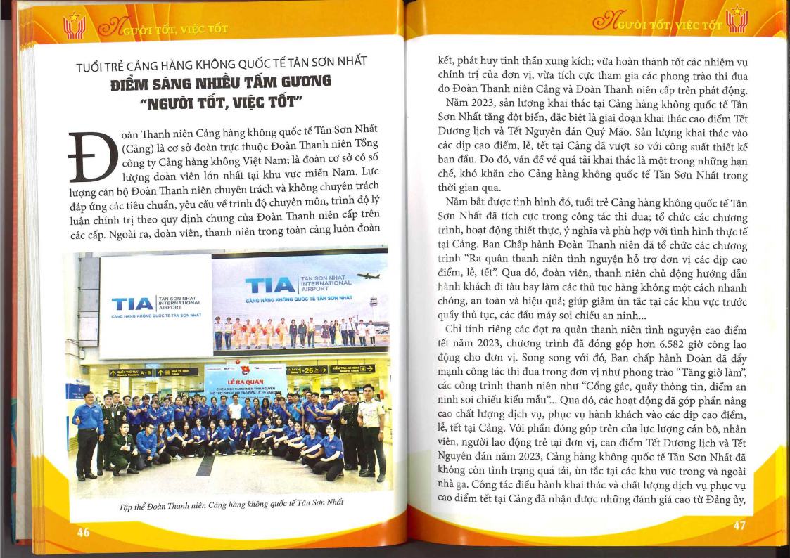 Bài viết Tuổi trẻ Cảng HKQT Tân Sơn Nhất - Điểm sáng nhiều tấm gương "Người tốt, việc tốt" được in trên sách Người tốt việc tốt, Trung tâm Thông tin - Truyền thông, Ban Thi đua - Khen thưởng trung ương