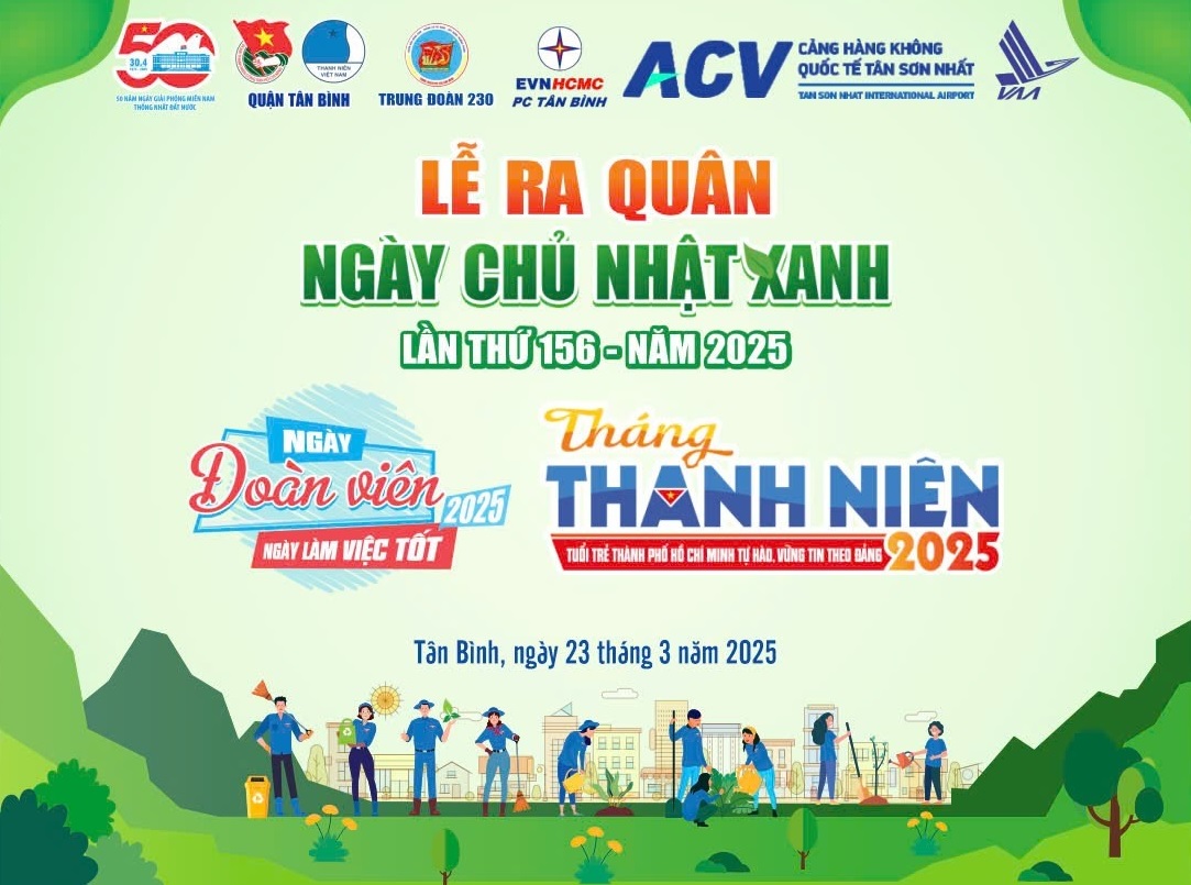 Ngày 23/3 vừa qua, Đoàn Thanh niên Cảng HKQT Tân Sơn Nhất phối hợp với Quận đoàn Tân Bình, Đoàn Học viện HKVN, Đoàn Điện lực Thành phố-PC Tân Bình đồng tổ chức chương trình “Ngày Chủ nhật xanh lần thứ 156” tại khu vực kênh Tân Trụ, Phường 15, quận Tân Bình, Tp. Hồ Chí Minh.