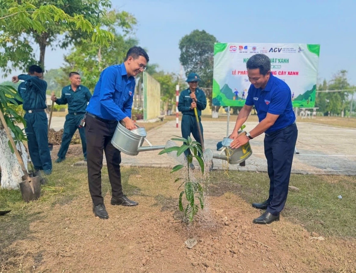 Đ/c Phùng Thanh Tú, Bí thư ĐTN Cảng HKQT Tân Sơn Nhất và đ/c Phan Lê Huy Hoàng, Bí thư Quận đoàn Tân Bình trong hoạt động trồng cây xanh.