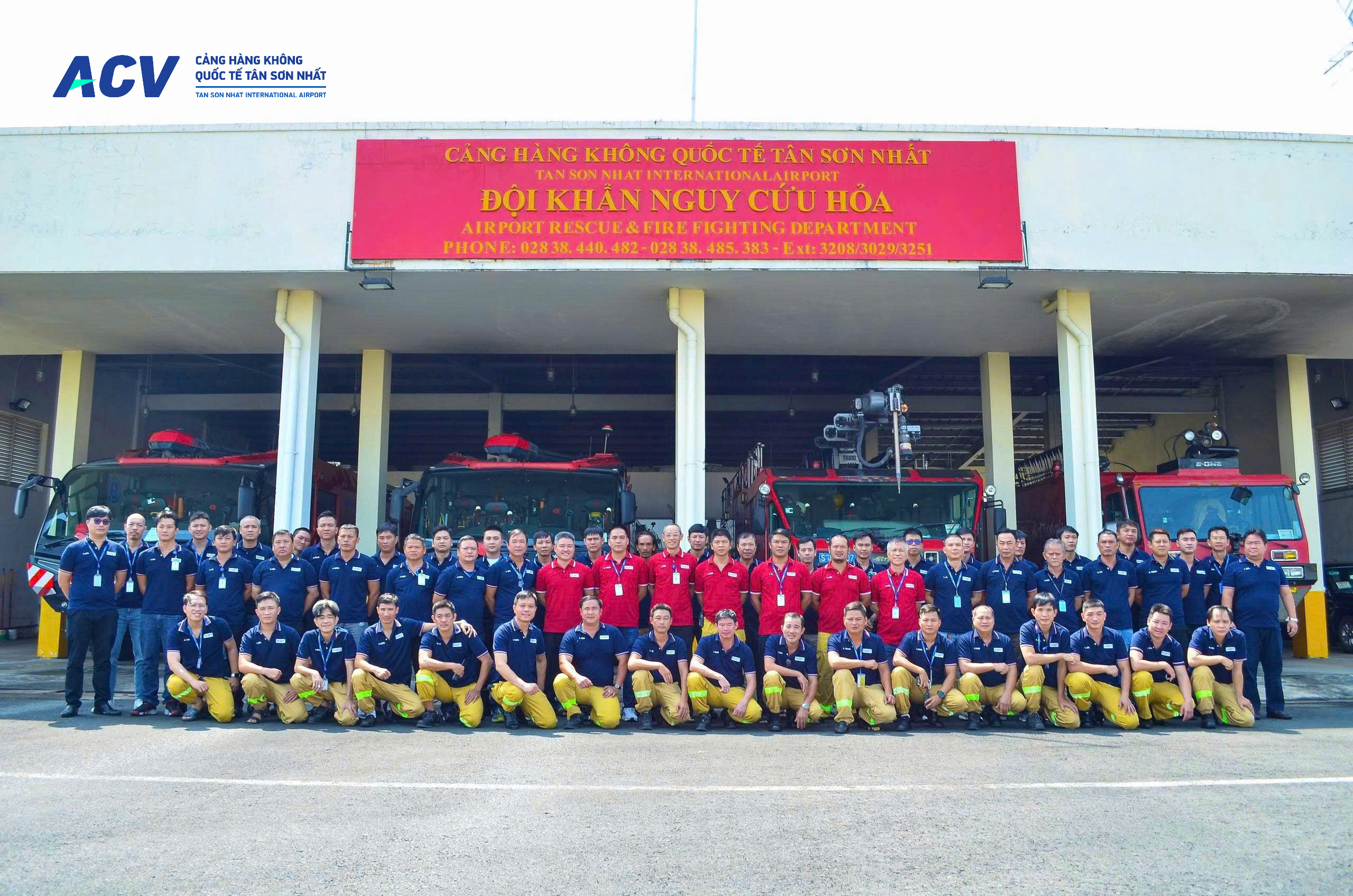 Lực lượng PCCC&CNCH thuộc Đội Khẩn nguy cứu hỏa, Trung tâm Điều hành sân bay, Cảng HKQT Tân Sơn Nhất.