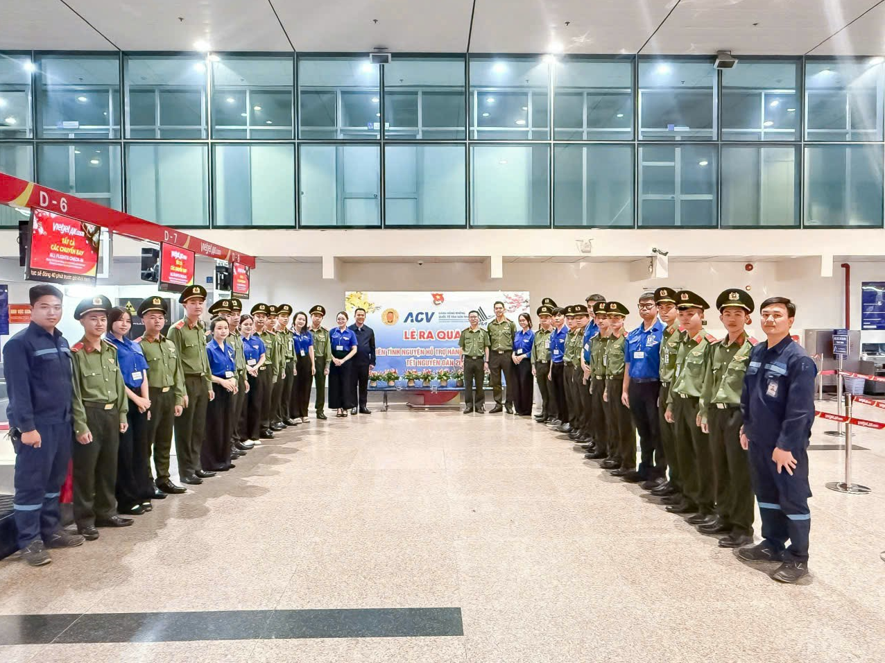 Thực hiện ý kiến chỉ đạo của Đảng ủy và Ban Giám đốc Cảng hàng không quốc tế Tân Sơn Nhất, sáng ngày 07/02/2026, Đoàn Thanh niên Cảng HKQT Tân Sơn Nhất đã phối hợp cùng các đơn vị tổ chức lễ ra quân nhằm nâng cao chất lượng dịch vụ phục vụ hành khách trong dịp Tết Nguyên đán Bính Ngọ 2026.