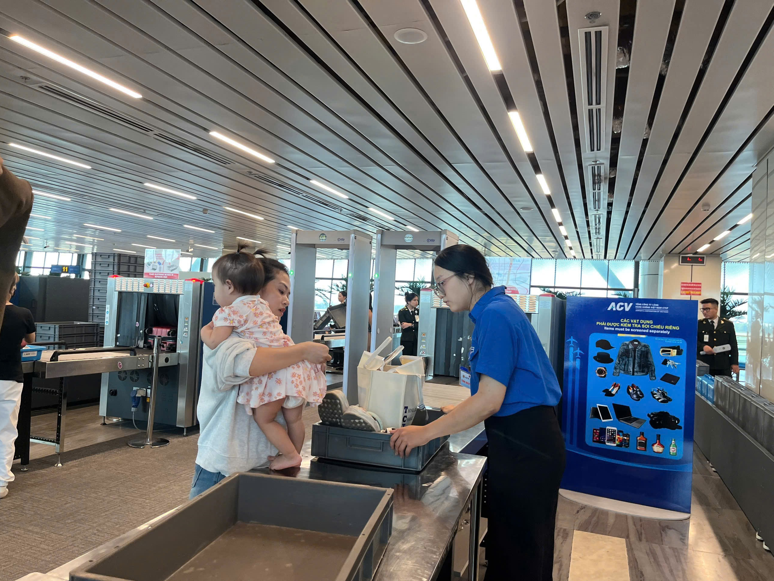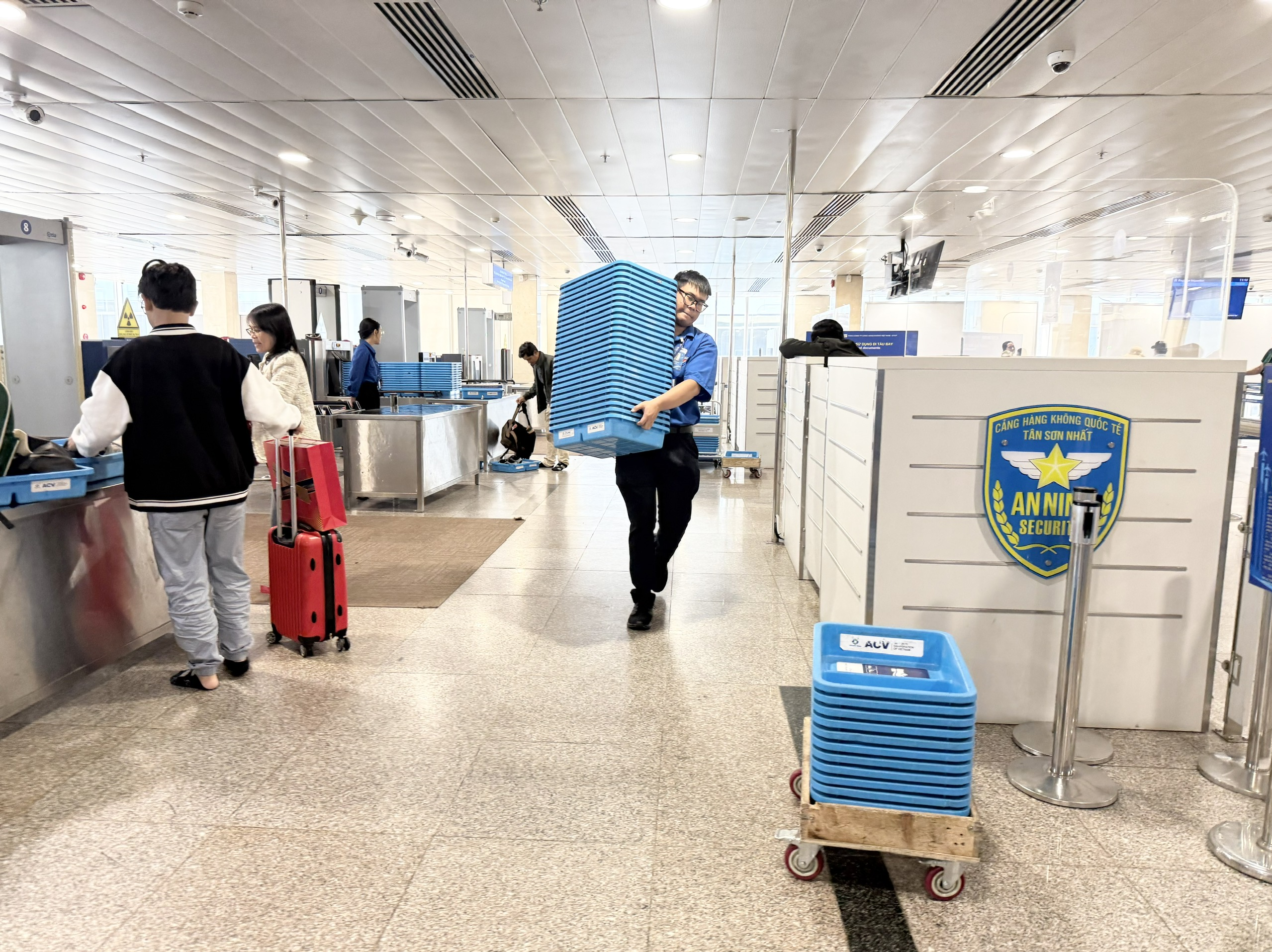 - Tại khu vực soi chiếu: Hỗ trợ hành khách thực hiện các thủ tục trước máy soi; thu gom khay sau khi soi chiếu để bảo đảm lưu thông nhanh chóng.