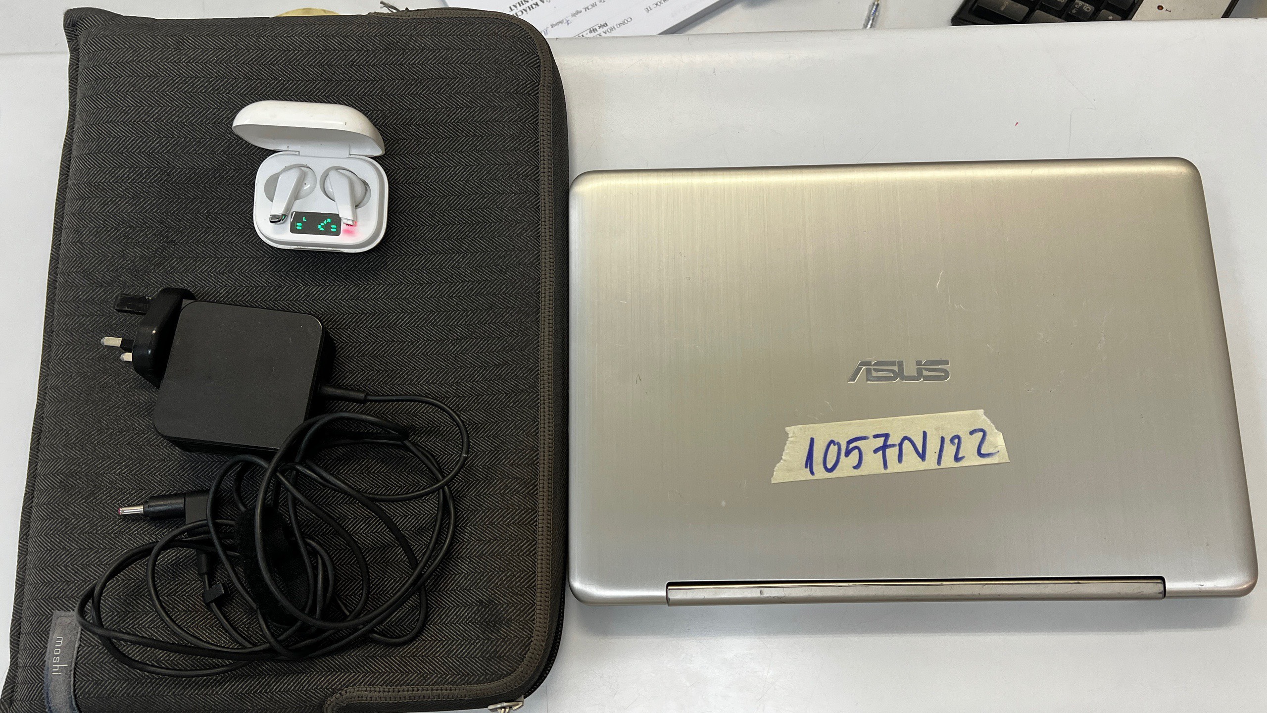 Ngày tiếp nhận: 07/11/2022 Mô tả: 01 túi vải màu nâu bên trong gồm: - 01 máy tính xách tay ASUS màu vàng - 01 dây sạc cho laptop - 01 hộp tai nghẻ màu trắng. Vị trí: An ninh soi chiếu quốc tế |