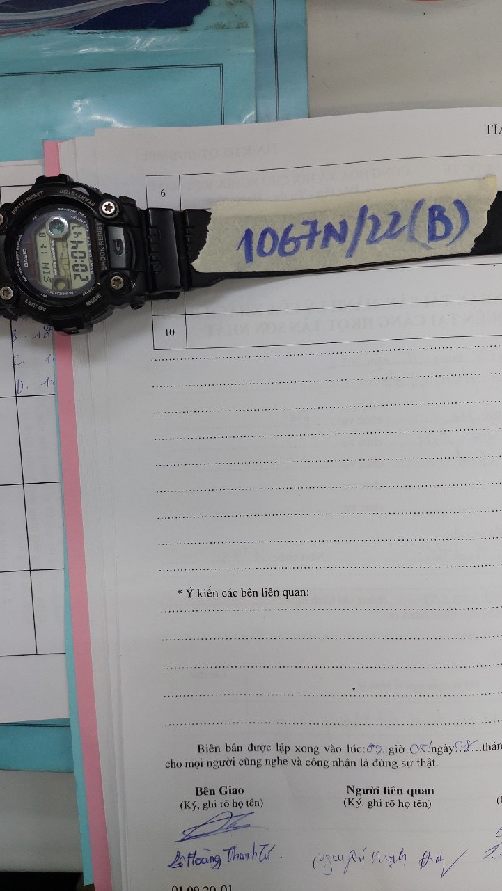 Ngày tiếp nhận: 10/11/2022 Mô tả: 01 đồng hồ điện tử màu đen chữ G-SHOCK. Vị trí: An ninh soi chiếu quốc nội |