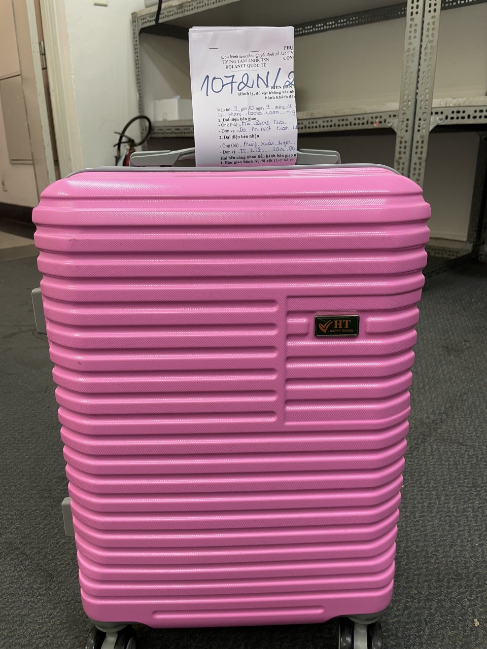 Ngày tiếp nhận: 09/11/2022 Mô tả: 01 túi nilon màu hồng bên trong có quần áo, đồ dùng cá nhân đã sử dụng. Vị trí: An ninh soi chiếu quốc nội |