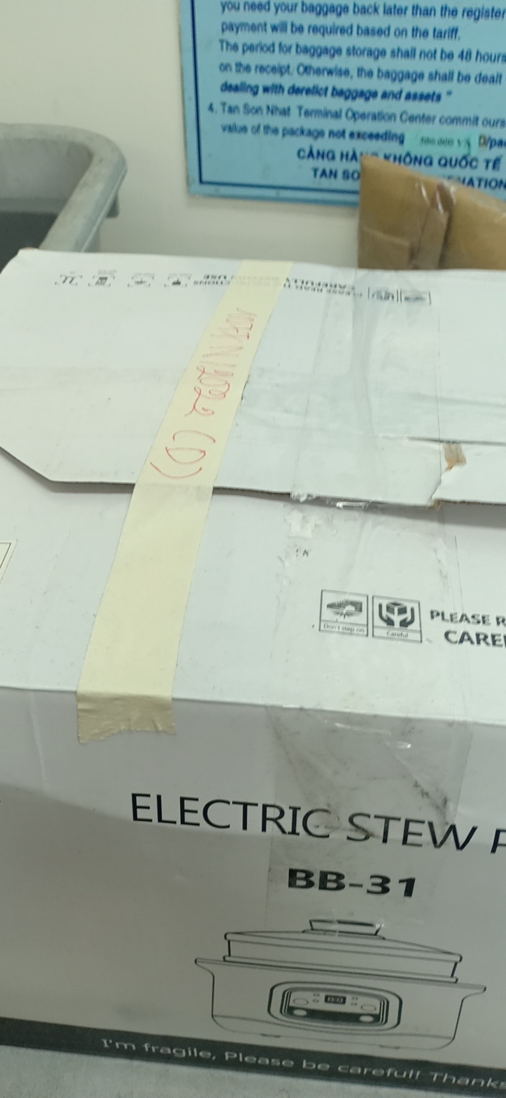 Ngày tiếp nhận: 10/11/2022 Mô tả: 01 thùng giấy màu trắng chữ BONBEBE có 01 cối xay sinh tố + 01 lò hấp. Vị trí: An ninh soi chiếu quốc nội |