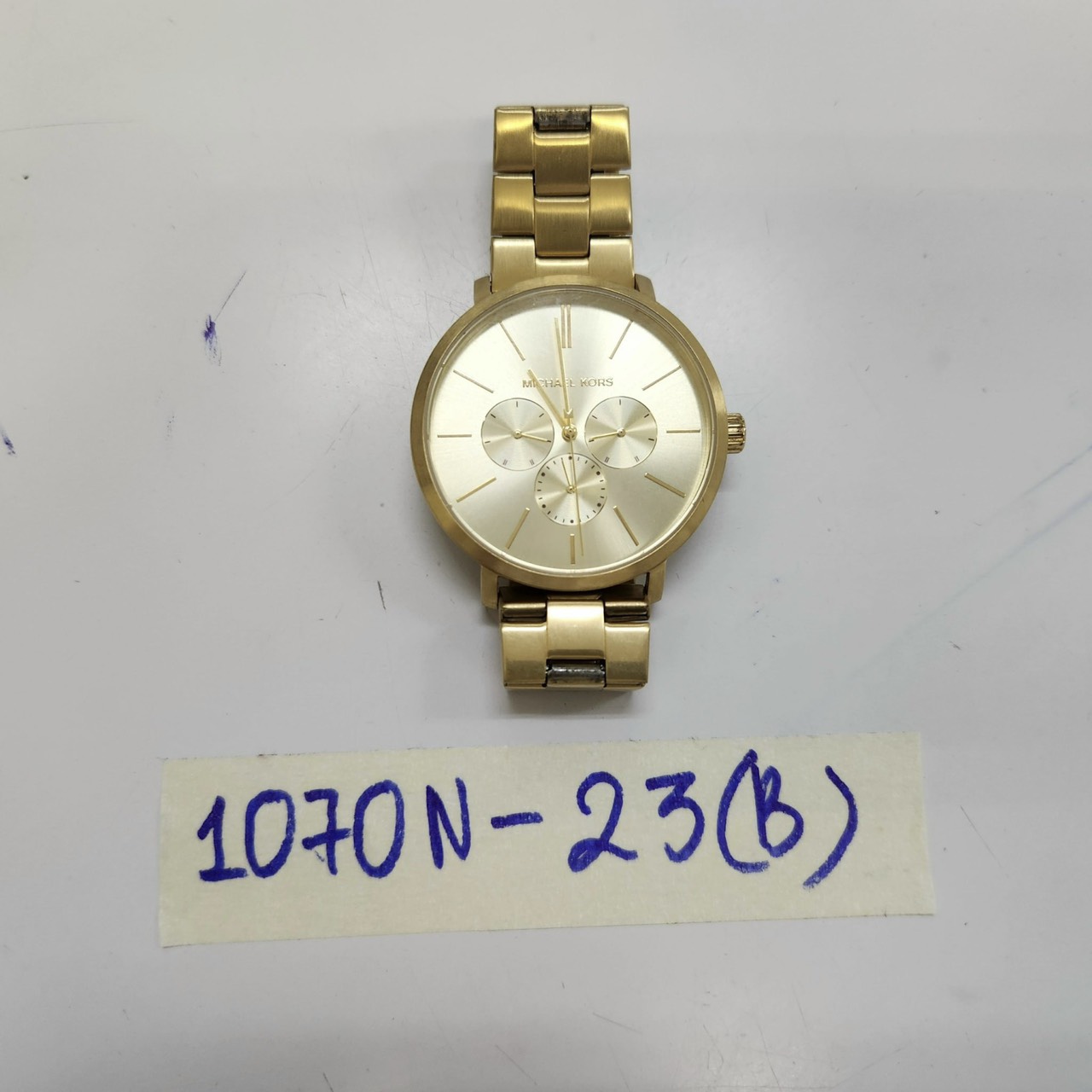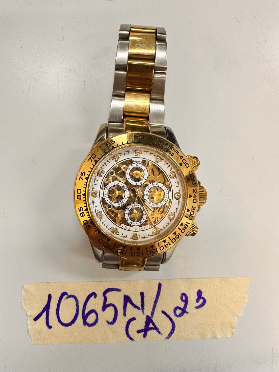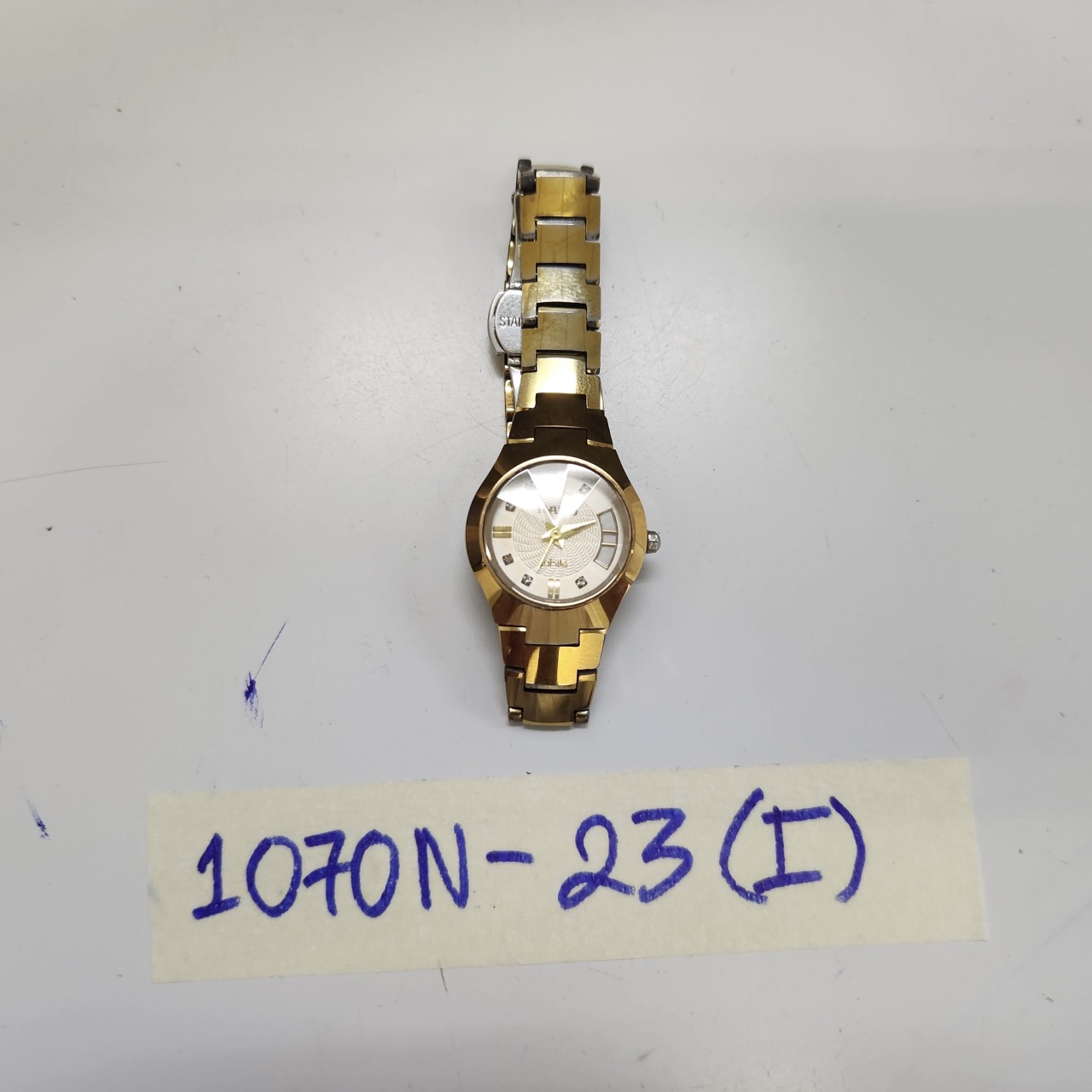 Ngày tiếp nhận: 04/8/2023 Mã hồ sơ: 1070N2023I Mô tả: 01 đồng hồ kim loại màu vàng, mặt kính tròn, có chữ RADO. Vị trí: An ninh soi chiếu quốc tế |