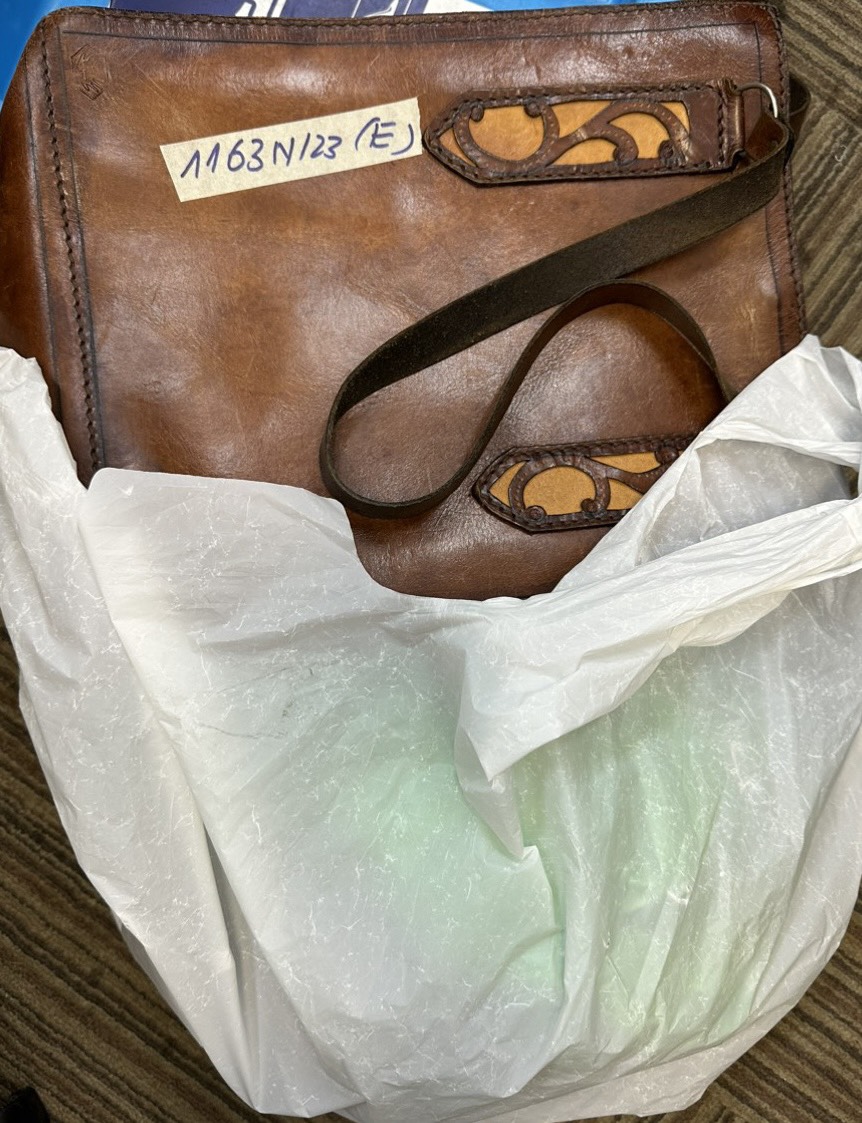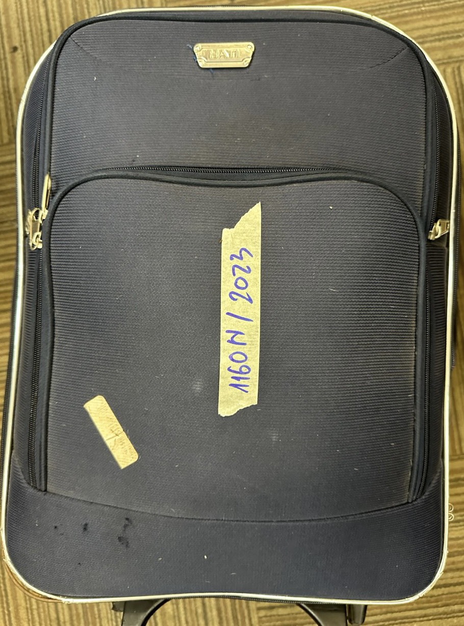 Ngày tiếp nhận: 16/8/2023 Mã hồ sơ: 1158N2023 Mô tả: 01 túi màu da nữ bên trong có đồ dùng cá nhân: 03 chai dung dịch, 01 sạc pin màu trắng. Vị trí: An ninh trật tự quốc nội |