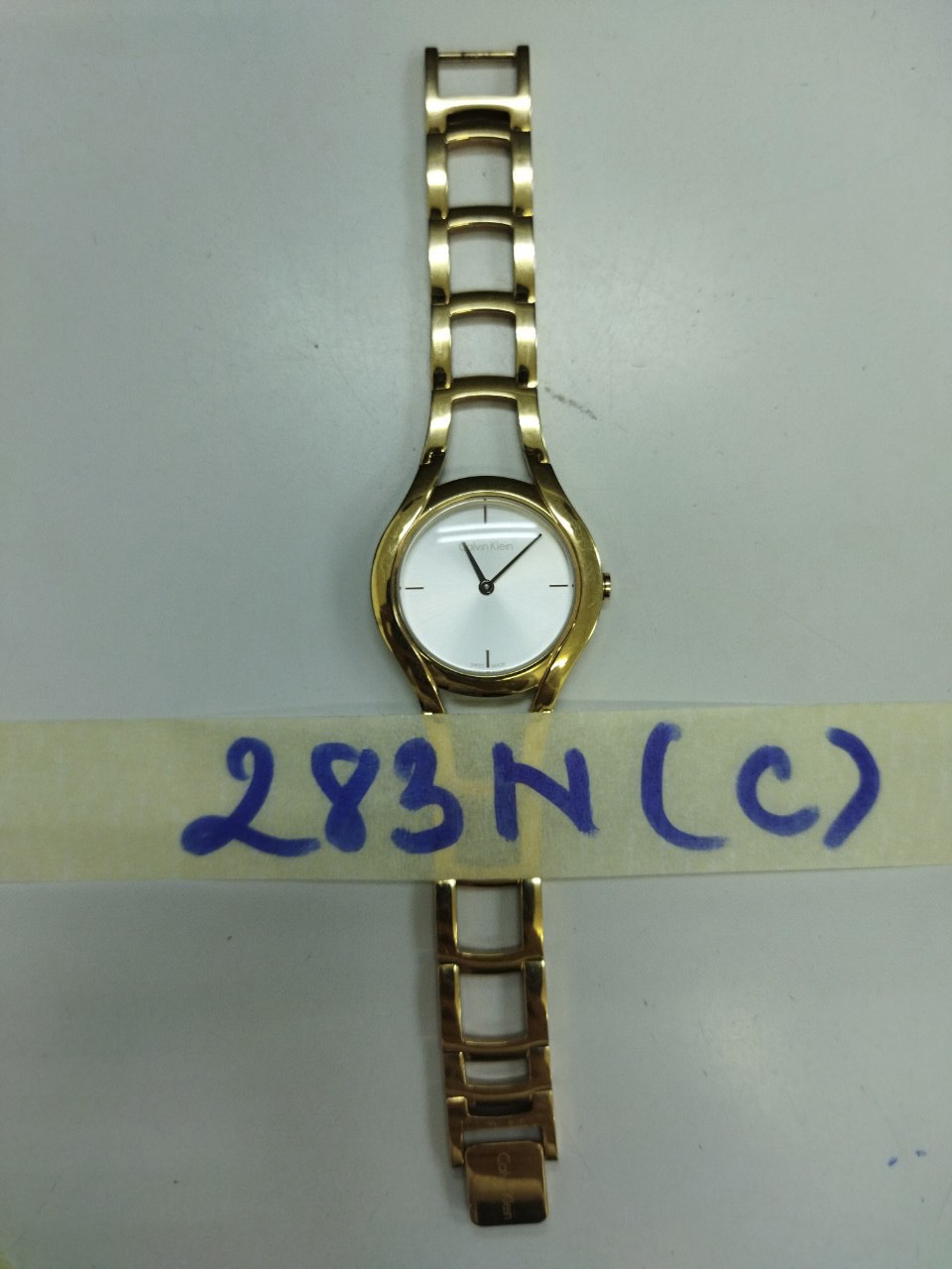 | 27 | Ngày tiếp nhận: 23/02/2023 Mã hồ sơ: 283N2023C Mô tả: 01 đồng hồ dây kim loại màu trắng viền vàng có chữ CAVIN KLEIN. Vị trí: An ninh soi chiếu quốc tế |