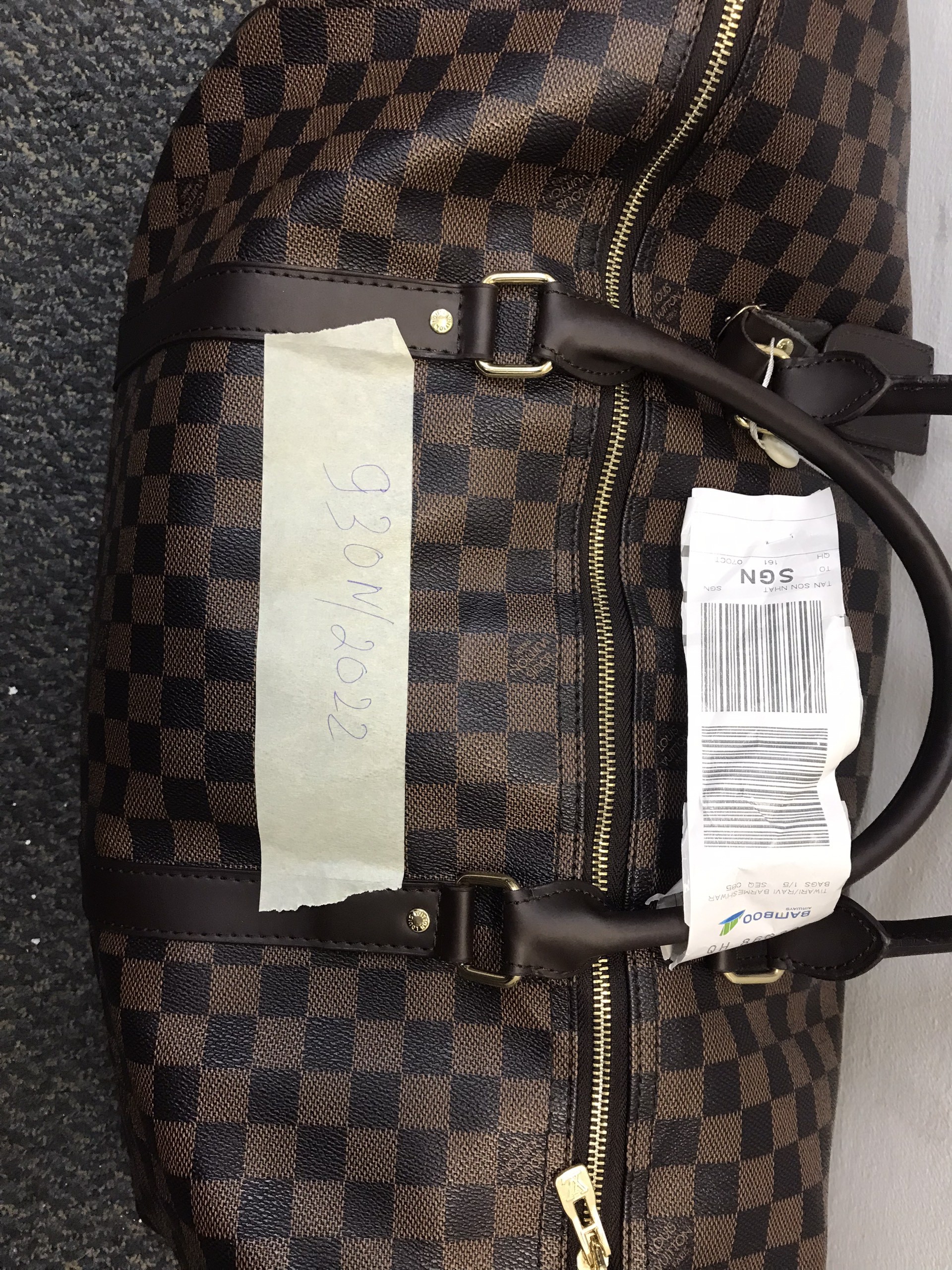Ngày tiếp nhận: 09/10/2022 Mô tả: 01 túi xách tay màu nâu họa tiết ô vuông bên trong có quần áo. Vị trí: An ninh soi chiếu quốc tế |