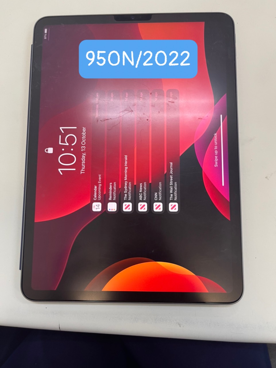 Ngày tiếp nhận: 14/10/2022 Mô tả: 01 Ipad màu xám có vỏ bọc màu xanh dương. Vị trí: An ninh soi chiếu quốc tế |