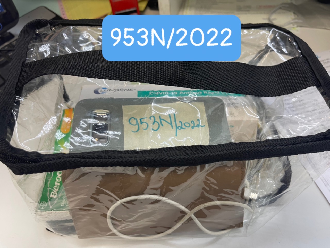 Ngày tiếp nhận: 14/10/2022 Mô tả: 01 túi xách tay bên trong gồm: 01 đĩa kim loại đựng trong hộp quà; Quần áo mới và thuốc cá nhân. Vị trí: An ninh soi chiếu quốc tế |