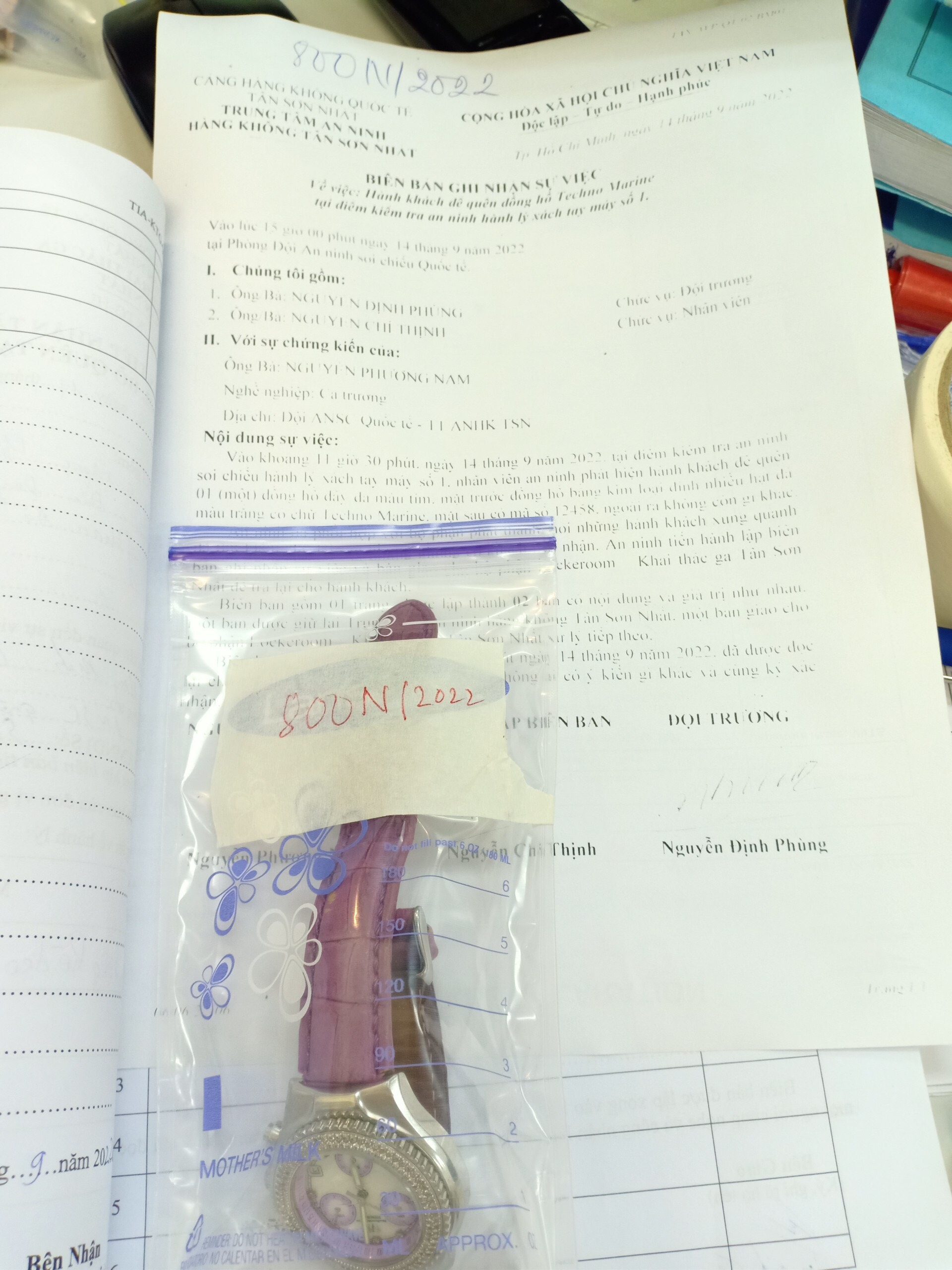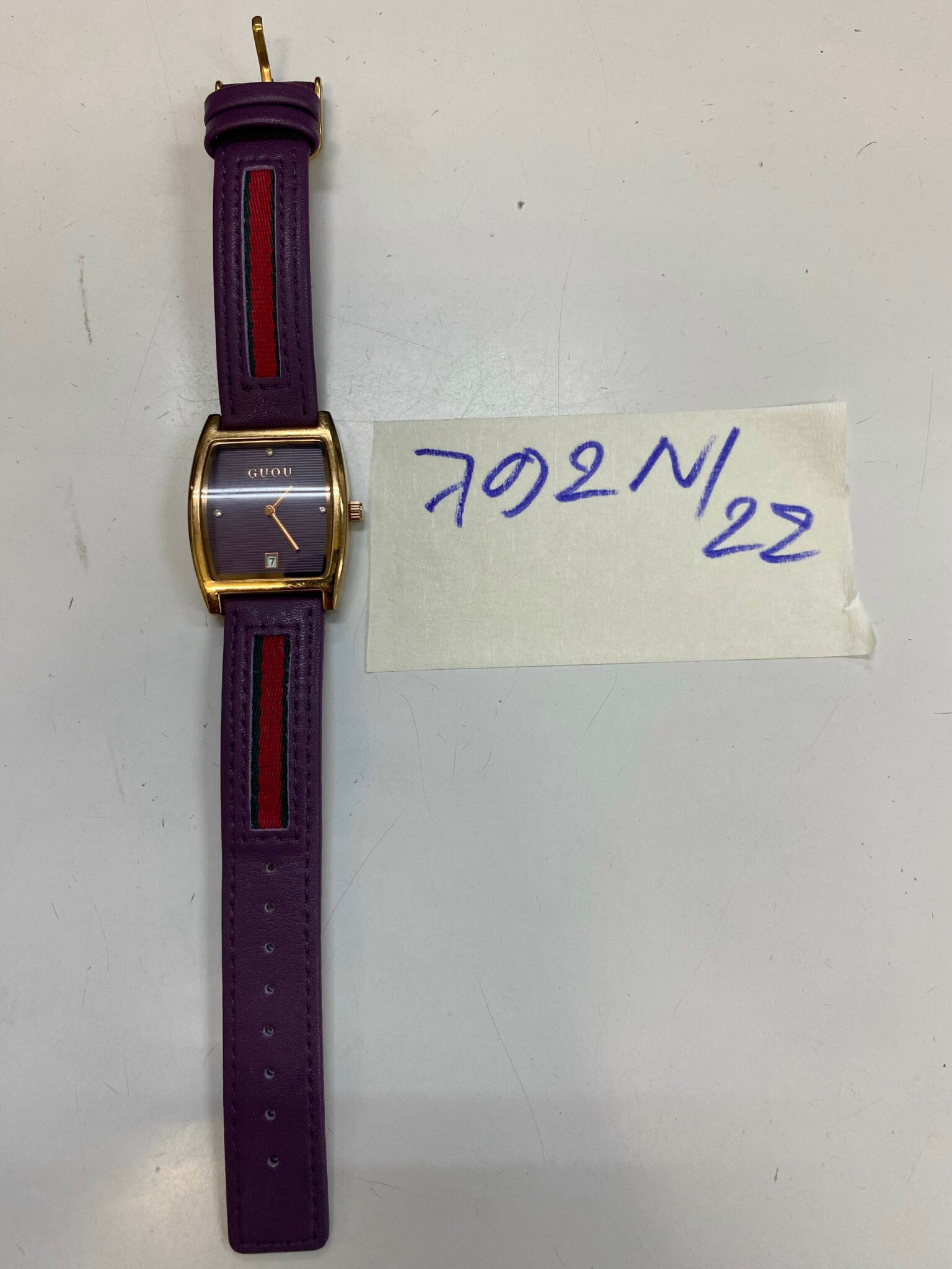 Ngày tiếp nhận: 13/9/2022 Mô tả: 01 đồng hồ màu tím Guou. Vị trí: An ninh soi chiếu quốc tế |