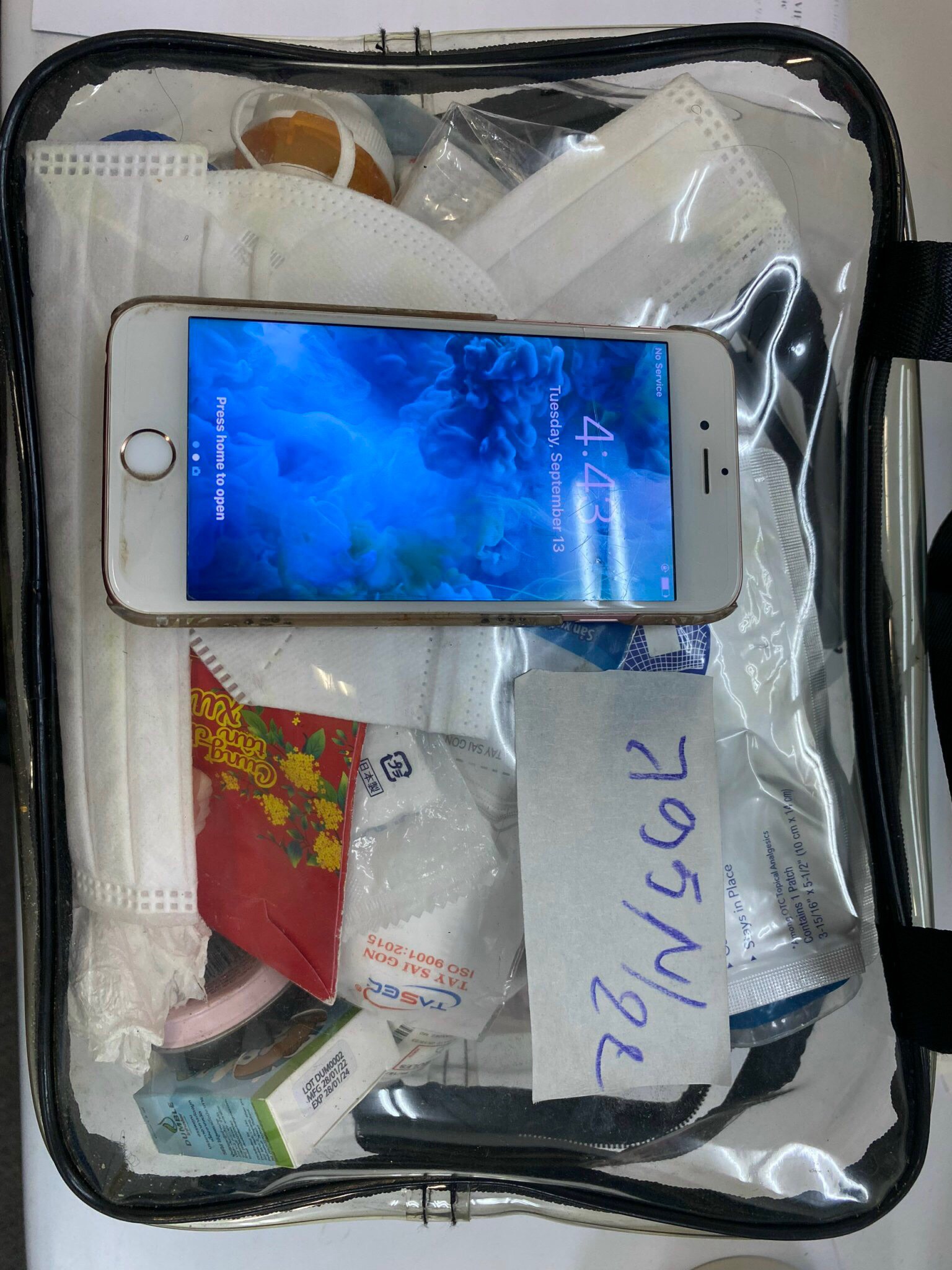 Ngày tiếp nhận: 12/9/2022 Mô tả: 01 điện thoại Iphone trắng ốp xanh. Vị trí: An ninh soi chiếu quốc nội |