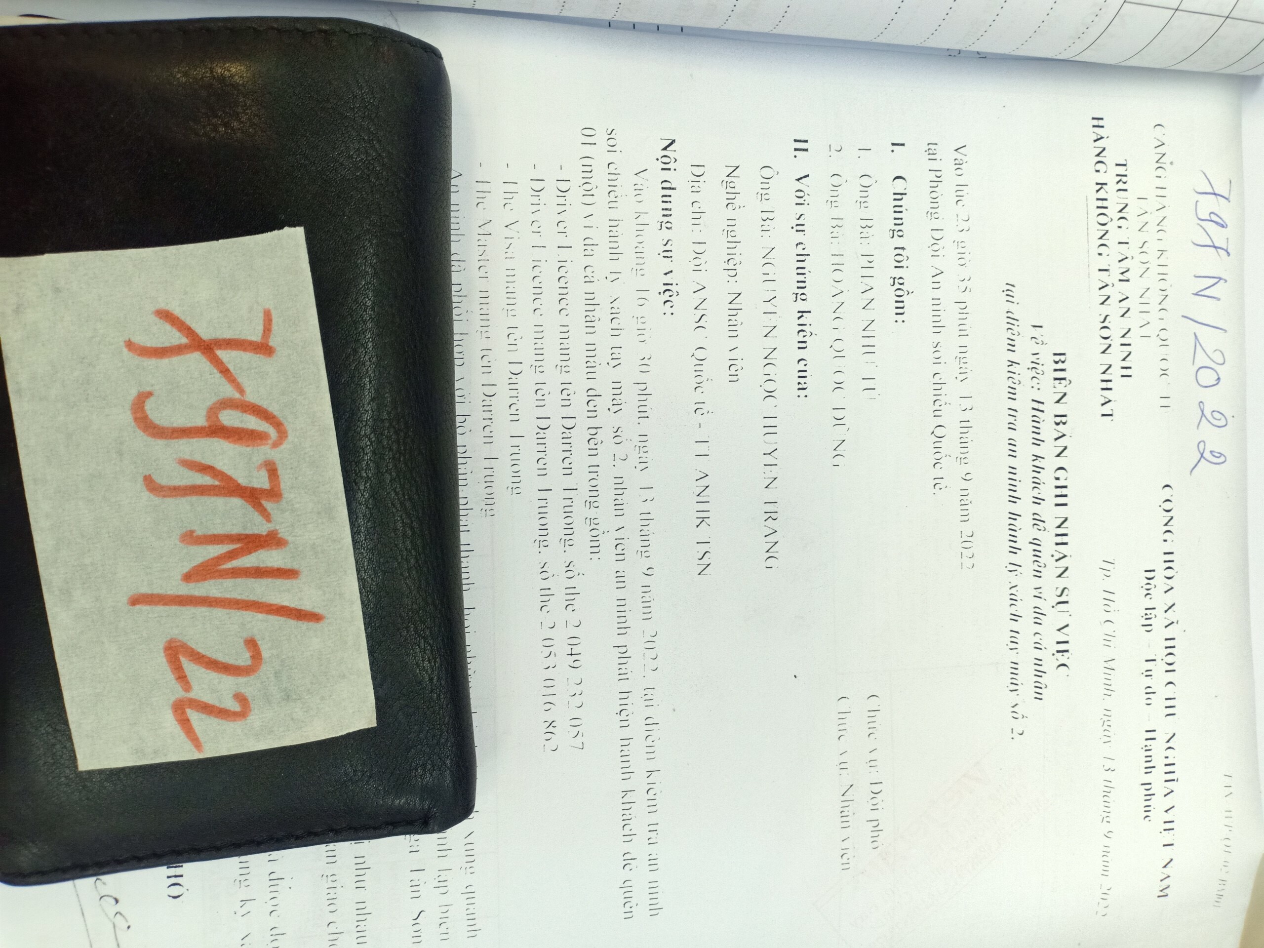 Ngày tiếp nhận: 14/9/2022 Mô tả: 01 ví đen có giấy tờ tên Darren Trương. Vị trí: An ninh soi chiếu quốc tế |