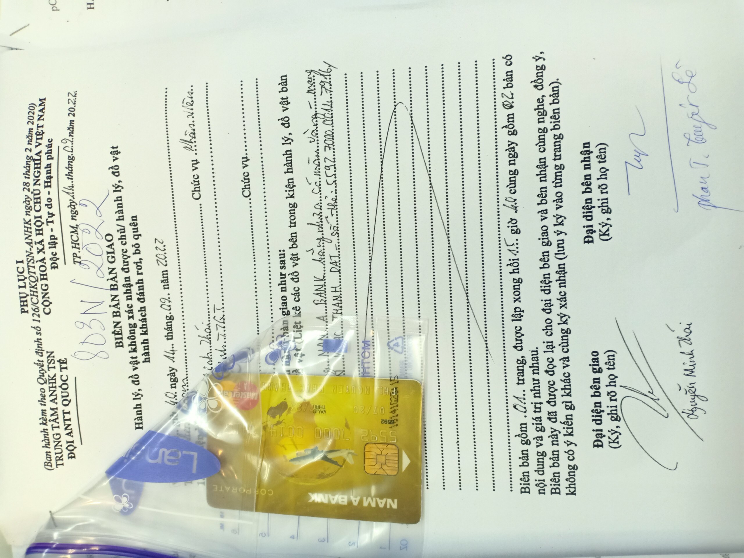 Ngày tiếp nhận: 14/9/2022 Mô tả: 01 thẻ ngân hàng tên NGUYEN KHAC THANH DAT. Vị trí: An ninh trật tự quốc tế |