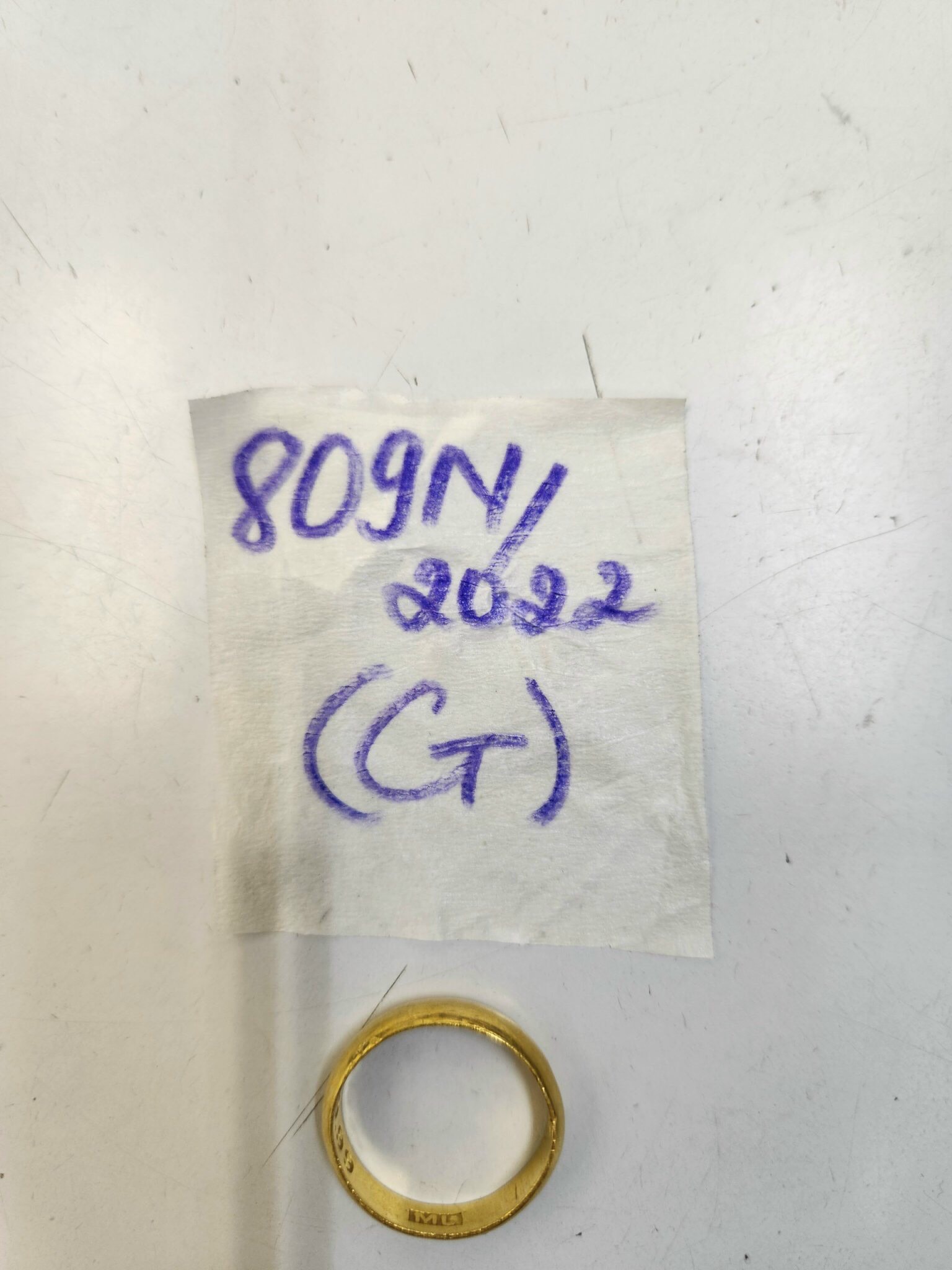 Ngày tiếp nhận: 15/9/2022 Mô tả: 01 nhẫn đeo tay kim loại màu vàng chữ 2C KIMHUE. Vị trí: An ninh soi chiếu quốc nội |