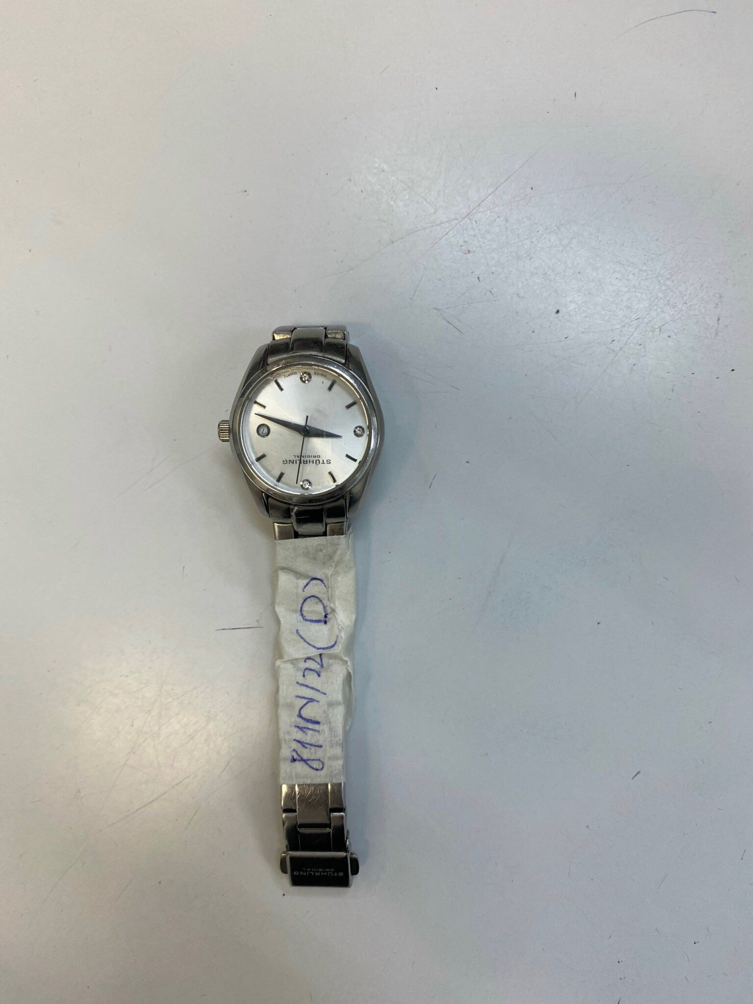 Ngày tiếp nhận: 17/9/2022 Mô tả: 01 đồng hồ dây kim loại STUHRLING. Vị trí: An ninh soi chiếu quốc nội |