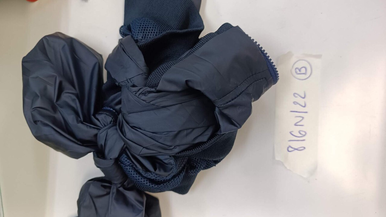 Ngày tiếp nhận: 18/9/2022 Mô tả: 01 áo khoác màu xanh và 01 bộ tai nghe không dây Samsung màu tím. Vị trí: An ninh soi chiếu quốc tế |