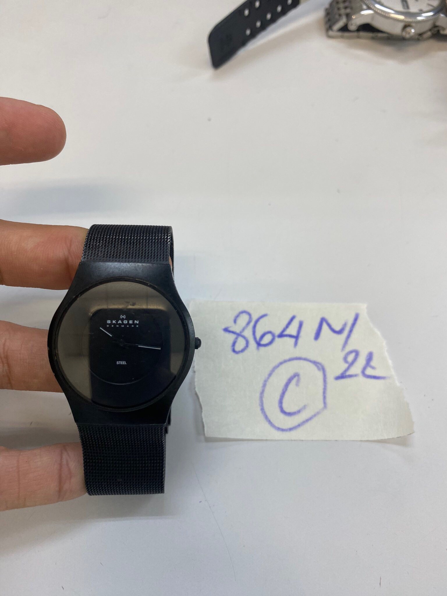 Ngày tiếp nhận: 27/9/2022 Mô tả: 01 đồng hồ kim loại đen Skagen. Vị trí: An ninh soi chiếu quốc nội |