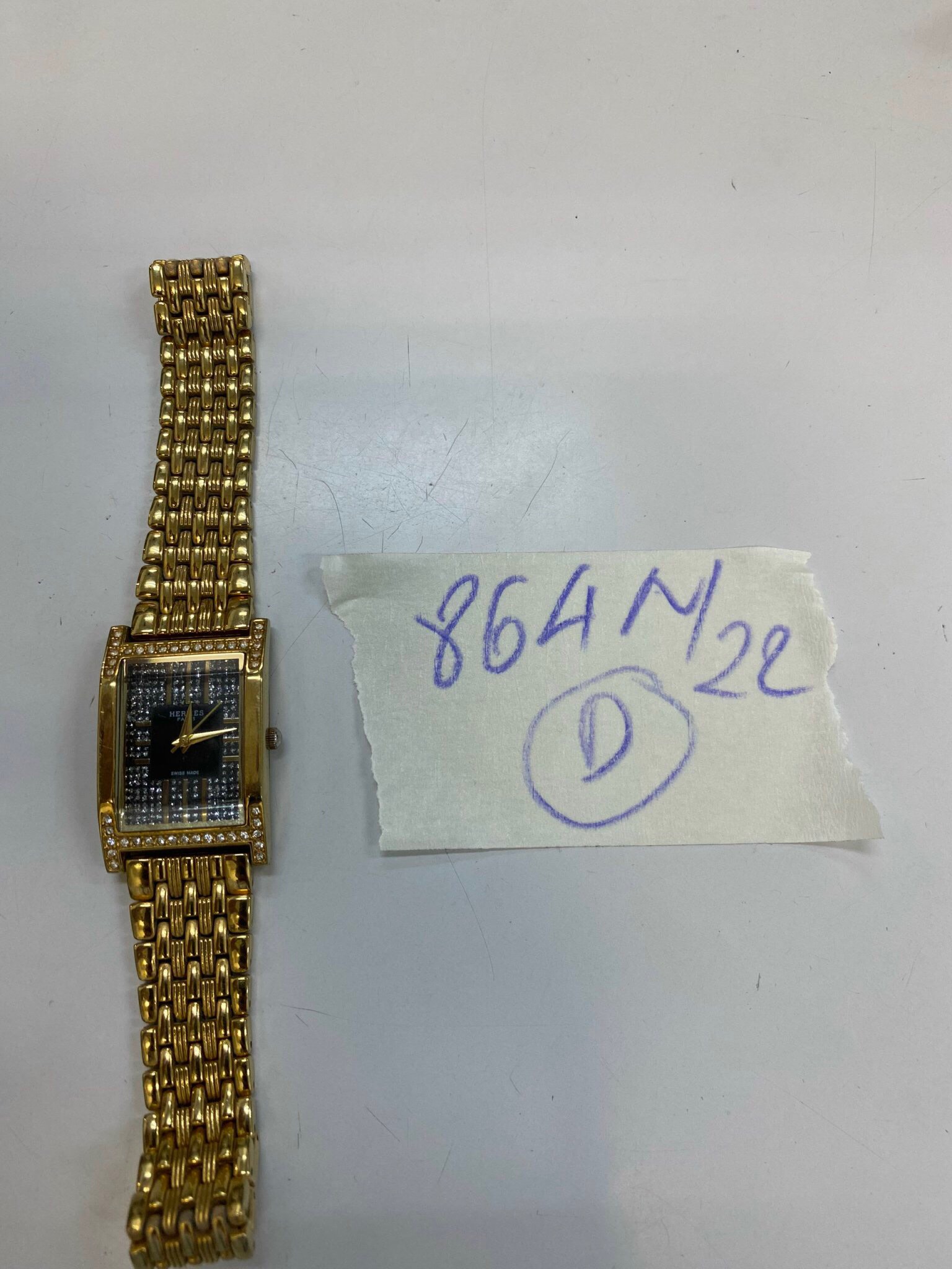 Ngày tiếp nhận: 27/9/2022 Mô tả: 01 đồng hồ kim loại vàng Hermes. Vị trí: An ninh soi chiếu quốc nội |