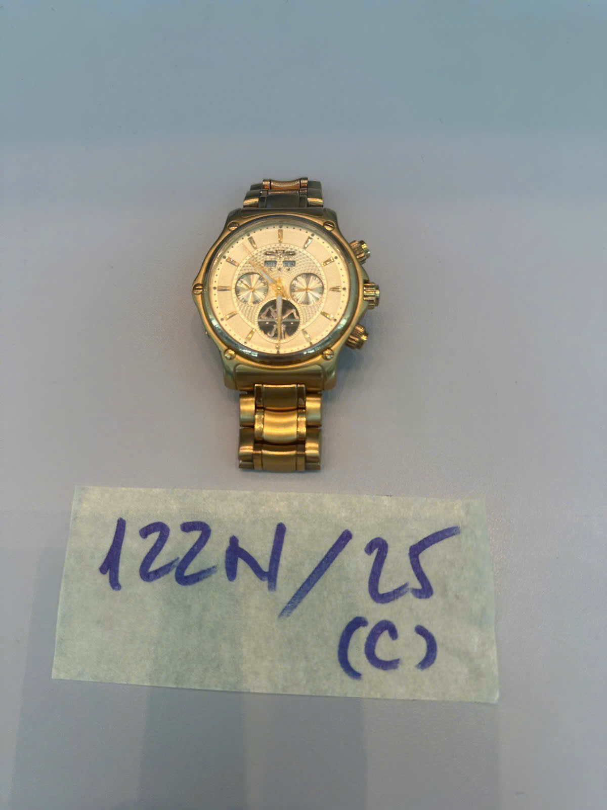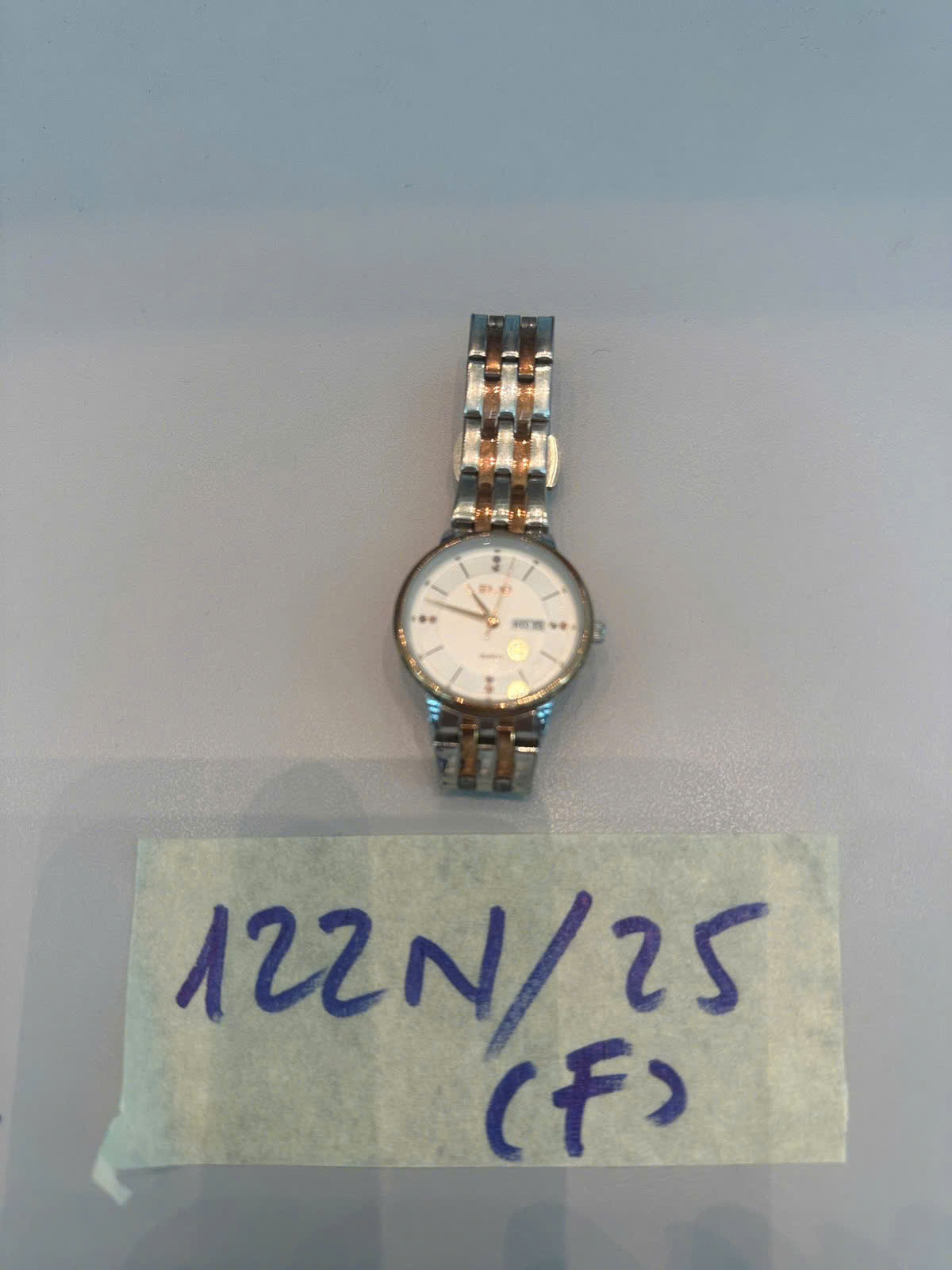 Ngày tiếp nhận: 10/12/2025 Mã hồ sơ: 122N2025F Mô tả: 01 đồng hồ màu bạc + vàng, có chữ ELIO. |