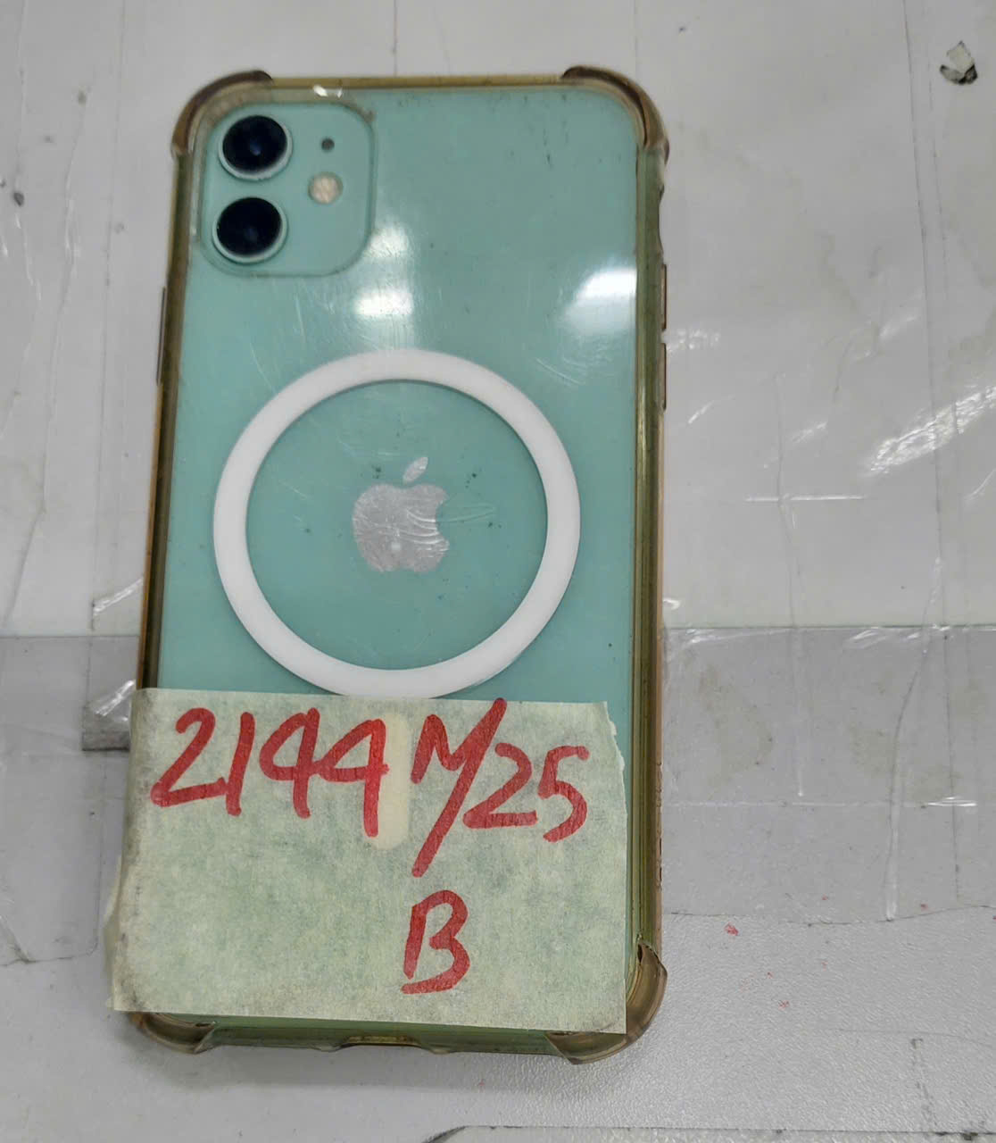 Ngày tiếp nhận: 09/12/2025 Mã hồ sơ: 2144N2025B Mô tả: 01 điện thoại giống IPHONE, mặt sau màu xanh, ốp lưng trong suốt. |
