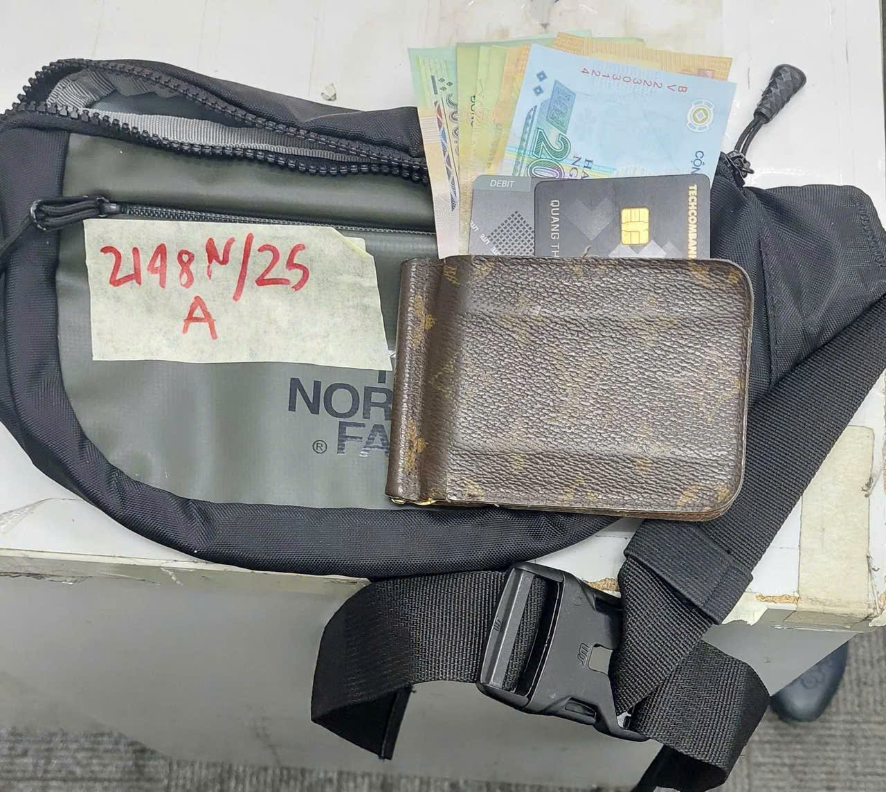 Ngày tiếp nhận: 09/12/2025 Mã hồ sơ: 2148N2025A Mô tả: 01 túi đeo nhỏ, có chữ THE NORTH FACE, bên trong có 01 ví nhỏ có 1.480.000đ, 01 thẻ Techcombank tên Quang Thi Hai Trieu, 01 thẻ visa Aba bank tên Imai Chuel. |