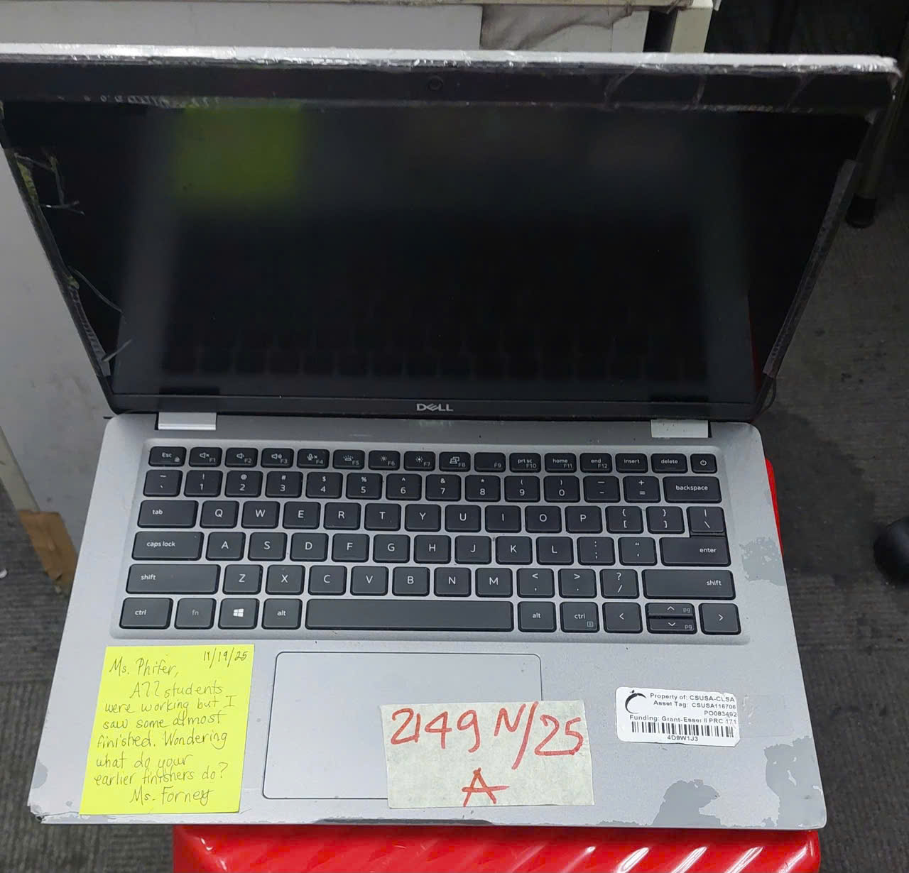 Ngày tiếp nhận: 09/12/2025 Mã hồ sơ: 2149N2025A Mô tả: 01 laptop màu xám có logo chữ DELL (Property of CSUSA-CLSA) có dán băng keo trong ở viền màn hình. |