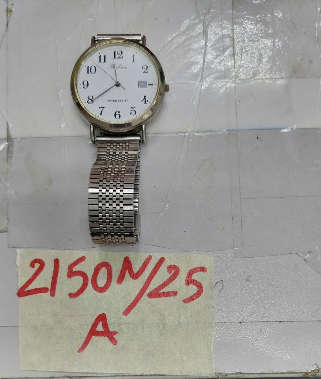 Ngày tiếp nhận: 09/12/2025 Mã hồ sơ: 2150N2025A Mô tả: 01 đồng hồ kim loại mặt tròn màu bạc , có chữ FALCON, dây bằng kim loại màu bạc, mặt sau có số 2115. |