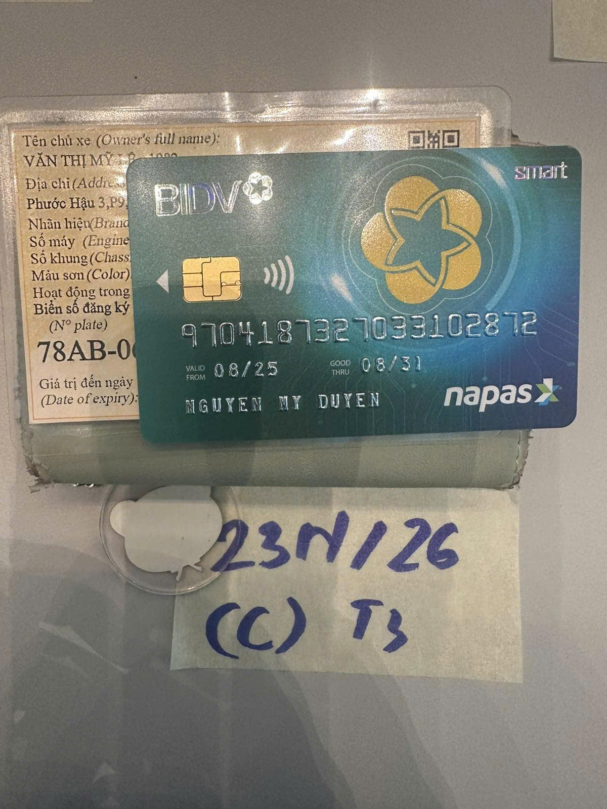 Mô tả: 01 ví màu xanh có giấy tờ NGUYỄN MỸ DUYÊN.