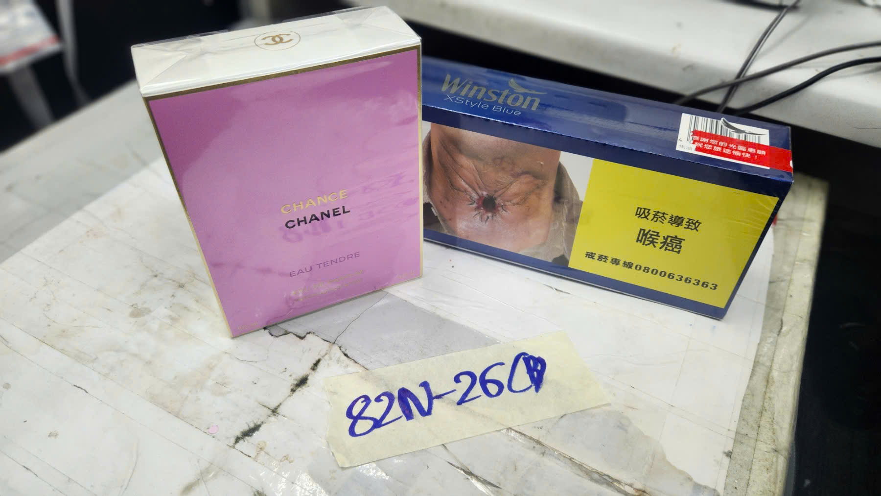 Mô tả: 01 chai nước hoa có chữ CHANEL qua sử dụng + 01 cây thuốc lá màu xanh qua sử dụng.