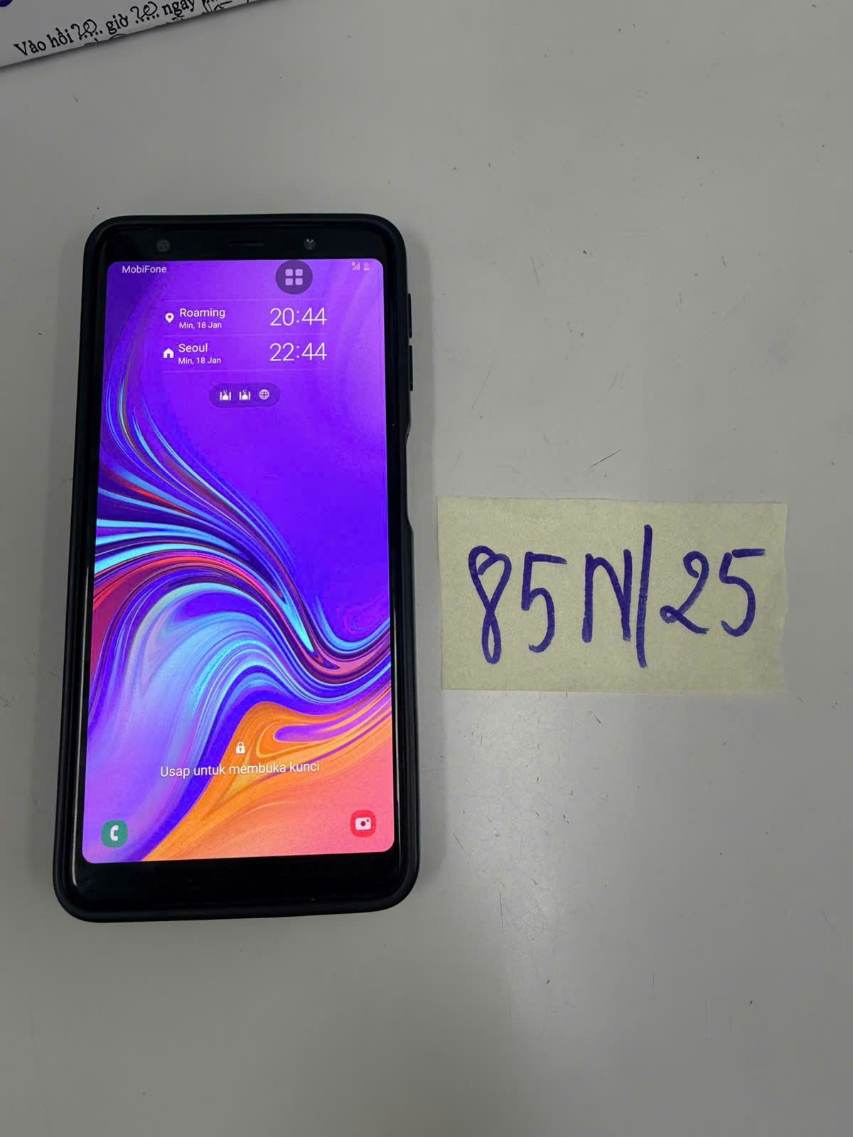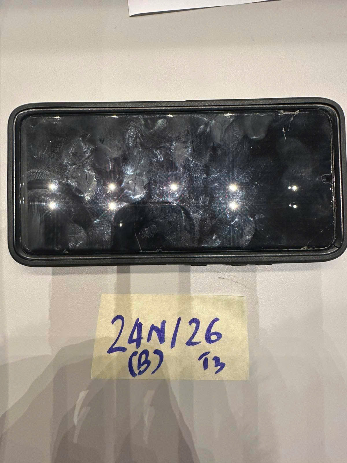 Mô tả: 01 điện thoại màu đen, ốp cao su đen ghi chữ SAMSUNG.
