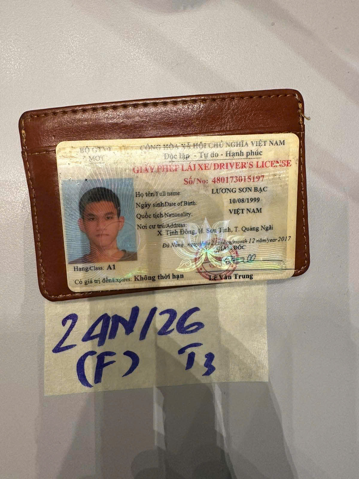 Mô tả: 01 bóp màu nâu da có 01 thẻ ngân hàng mang tên PHẠM THỊ TRINH, 02 thẻ ngân hàng, 01 GPLX mang tên LƯƠNG SƠN BẠC.