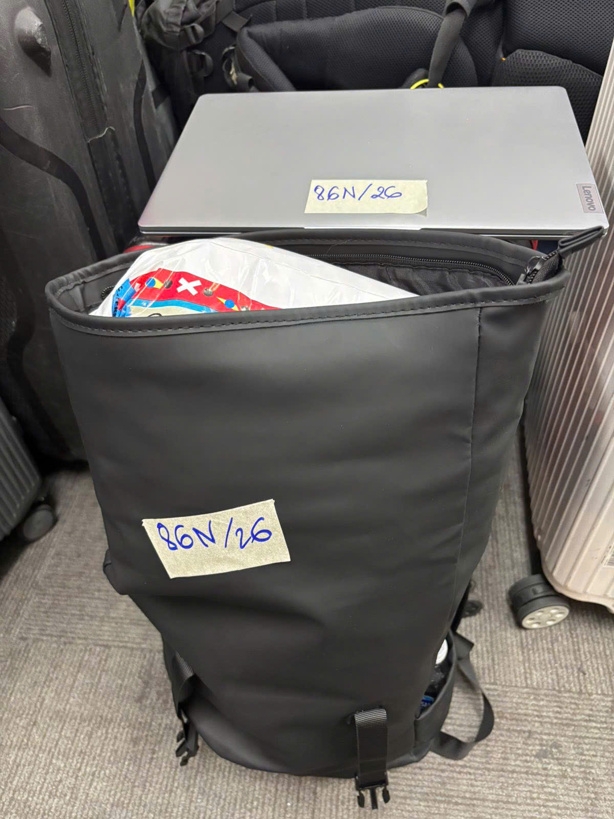 Mô tả: 01 Balo da màu đen có 01 laptop Lenovo, đồ dùng cá nhân.