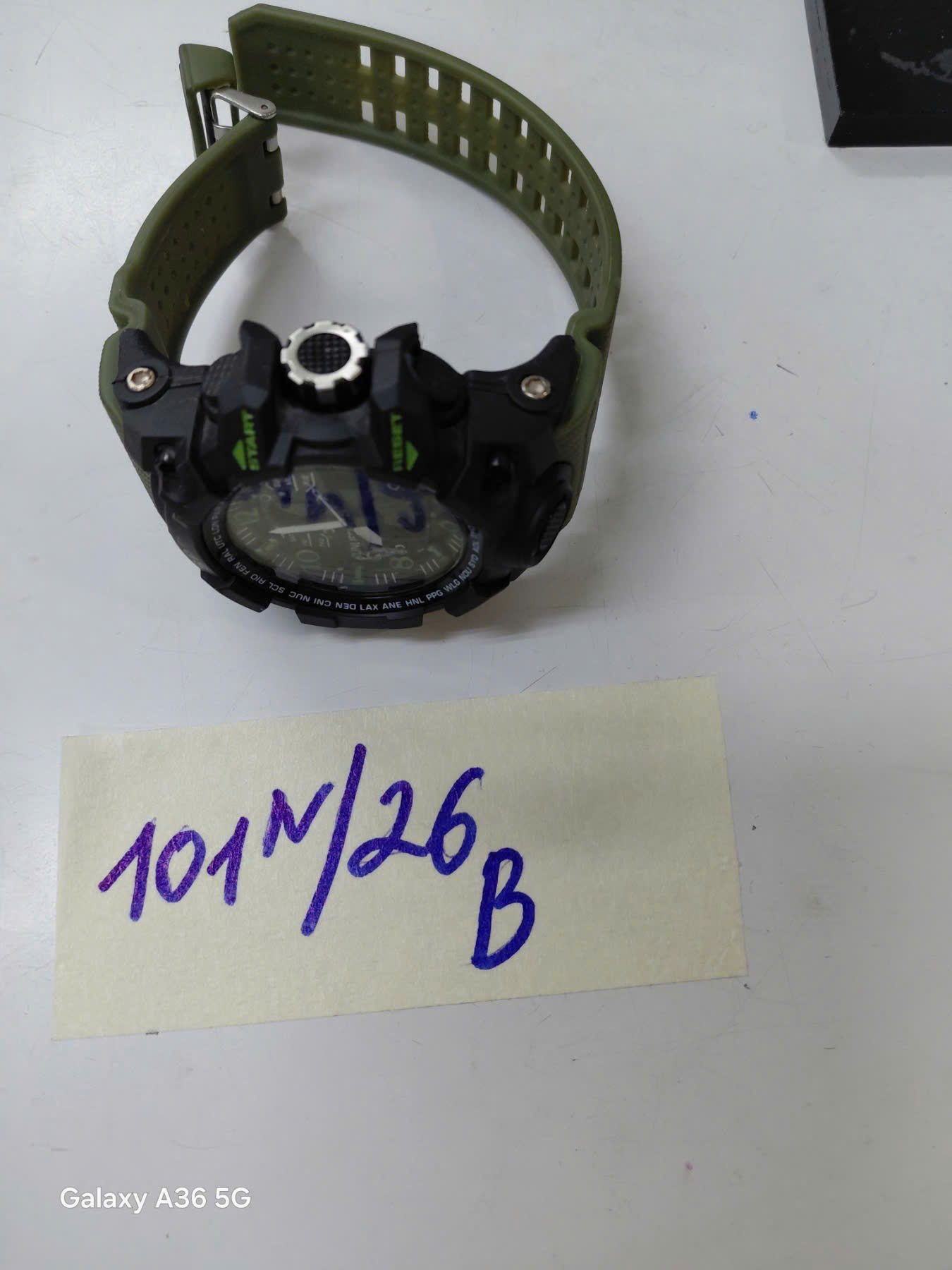 Ngày tiếp nhận: 20/01/2026 Mã hồ sơ: 101N2026B Mô tả: 01 đồng hồ màu đen mặt tròn có chữ “SUNLIFE”, dây da màu xanh lá. |