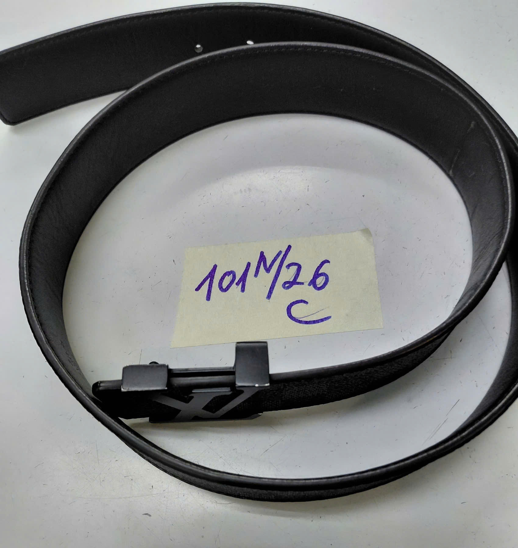 Ngày tiếp nhận: 20/01/2026 Mã hồ sơ: 101N2026C Mô tả: 01 thắt lưng màu đen chất liệu giống da có chữ “LV”. |