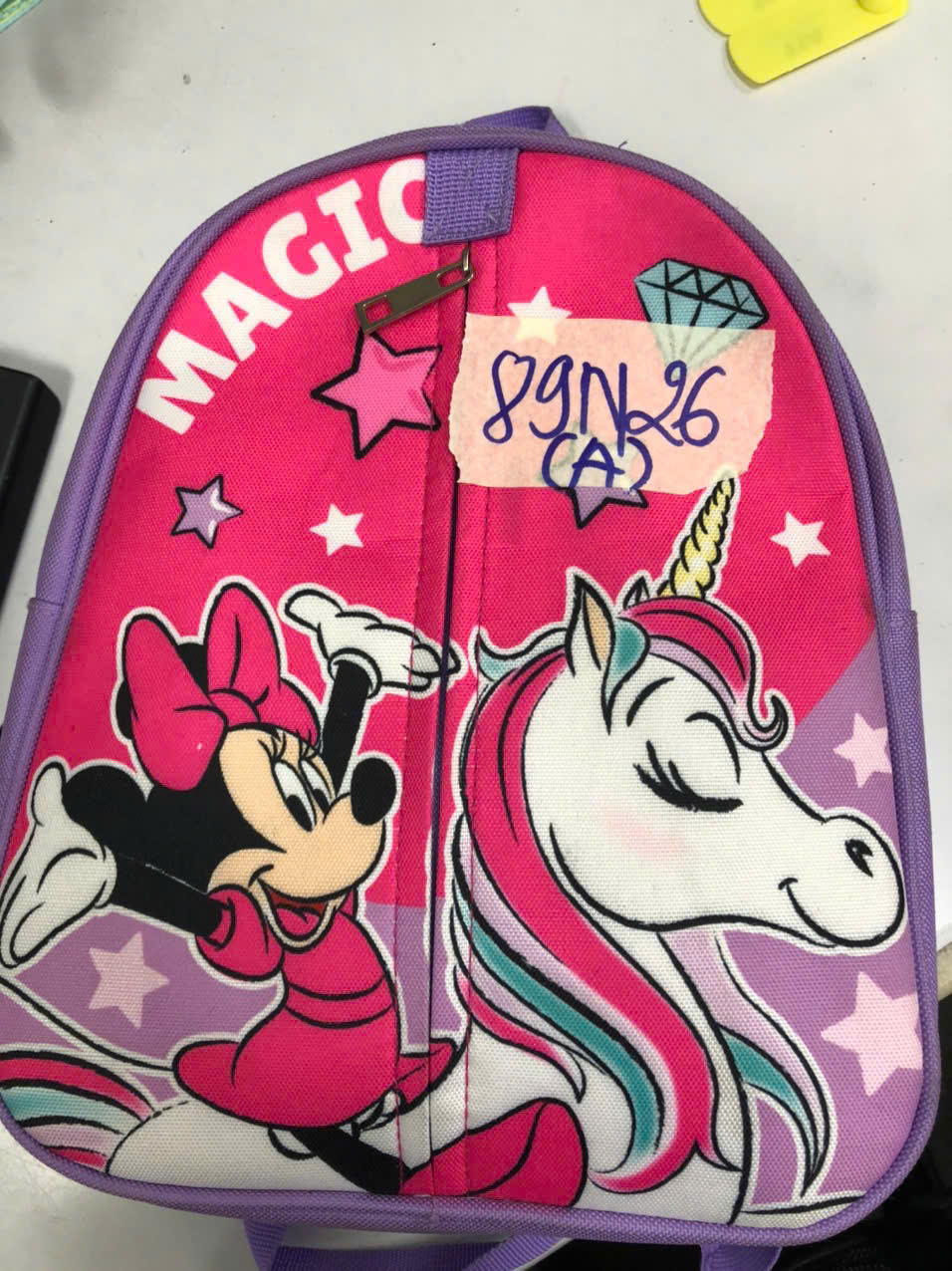Ngày tiếp nhận: 20/01/2026 Mã hồ sơ: 89N2026A Mô tả: 01 ba lô vải màu tím, mặt ngoài có chữ “MAGIC”, bên trong có 02 điện thoại di động (01 Samsung màu xanh, ốp lưng màu đen; 01 Realme màu xanh, ốp lưng trong suốt) và quần áo. |