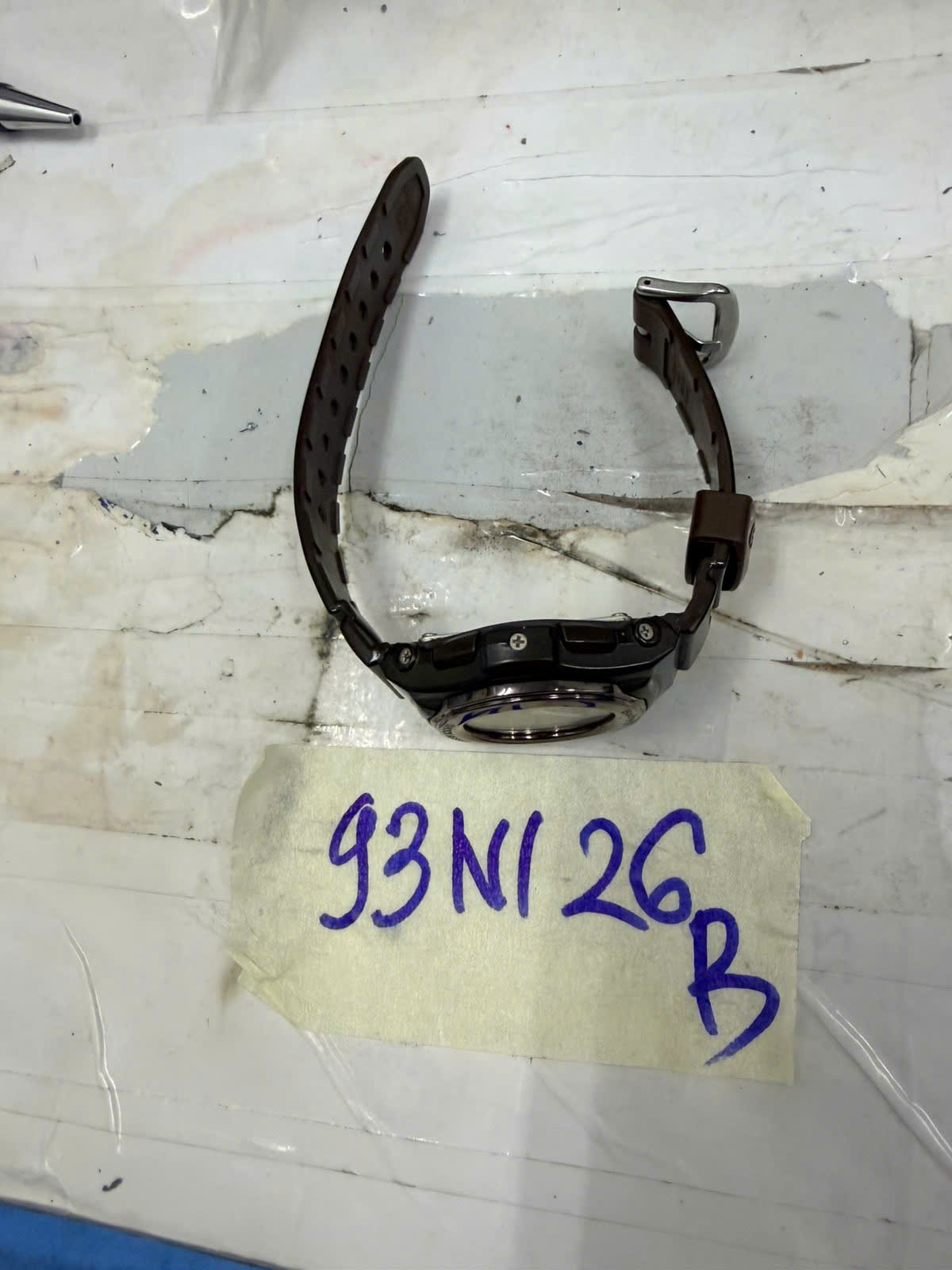 Ngày tiếp nhận: 20/01/2026 Mã hồ sơ: 93N2026B Mô tả: 01 đồng hồ mặt tròn bằng nhựa màu nâu hiệu “CASIO BABY G”, dây nhựa màu nâu. |