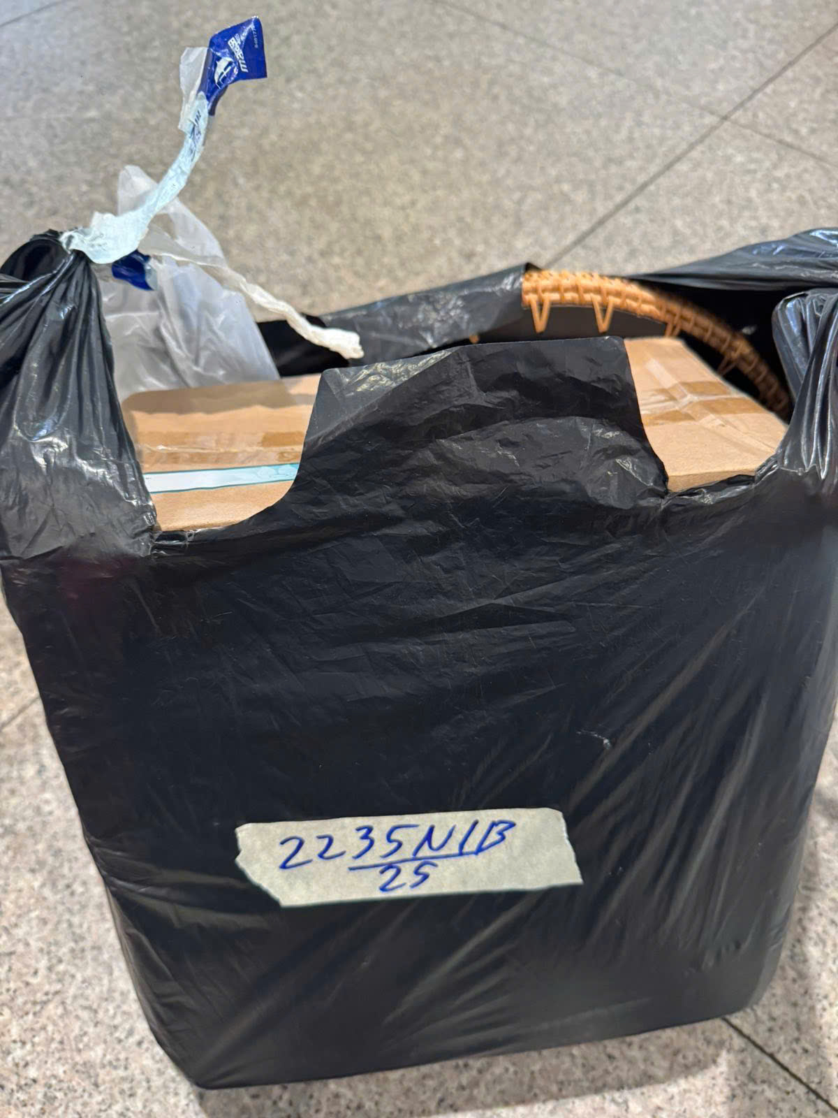 Ngày tiếp nhận: 30/12/2025 Mã hồ sơ: 2235N2025B Mô tả: 01 TÚI ĐEN BÊN TRONG CÓ HỘP ĐỒ CHƠI VÁ 01 ĐÔI GIÀY MÀU TRẮNG. |