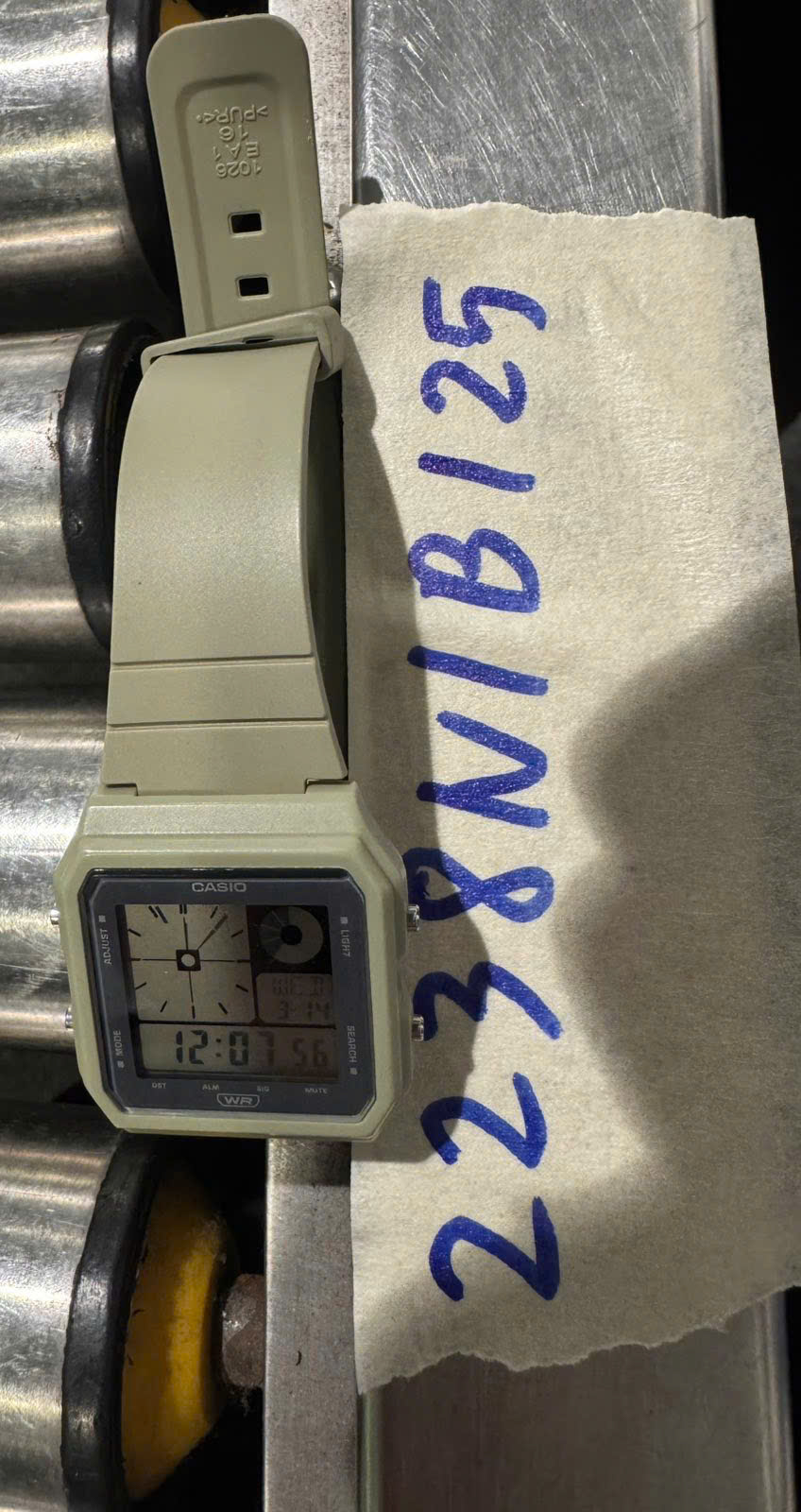 Ngày tiếp nhận: 30/12/2025 Mã hồ sơ: 2238N2025B Mô tả: 01 đồng hồ CASIO MẶT VUÔNG MÀU XÁM , DÂY NHỰA XANH. |