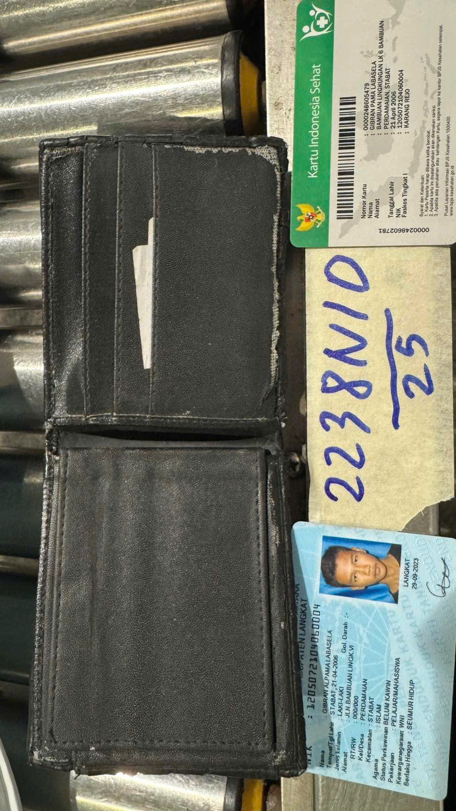 Ngày tiếp nhận: 30/12/2025 Mã hồ sơ: 2238N2025D Mô tả: 01 VÍ MÀU ĐEN BÊN TRONG CÓ 3 THÈ CÁ NHÂN TÊN" GIBRAN ALPAMA. |