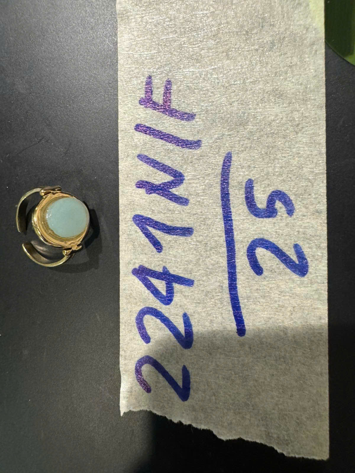 Ngày tiếp nhận: 30/12/2025 Mã hồ sơ: 2241N2025F Mô tả: 01 NHẪN ĐEO TAY MÀU VÀNG ĐÍNH ĐÁ HỌA TIẾT MÀU XANH. |