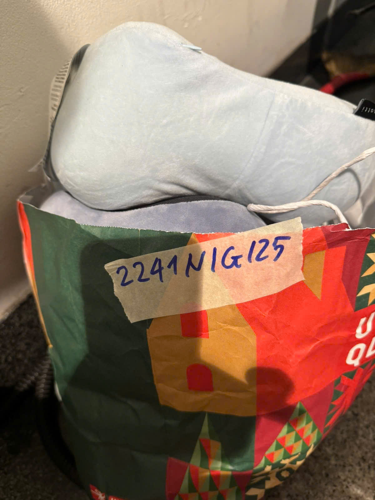 Ngày tiếp nhận: 30/12/2025 Mã hồ sơ: 2241N2025G Mô tả: 01 TÚI GIẤY CÓ CHỮ UNIQLO C01 3 ĐÔI GIÀY, 03 CÁI GỐI. |