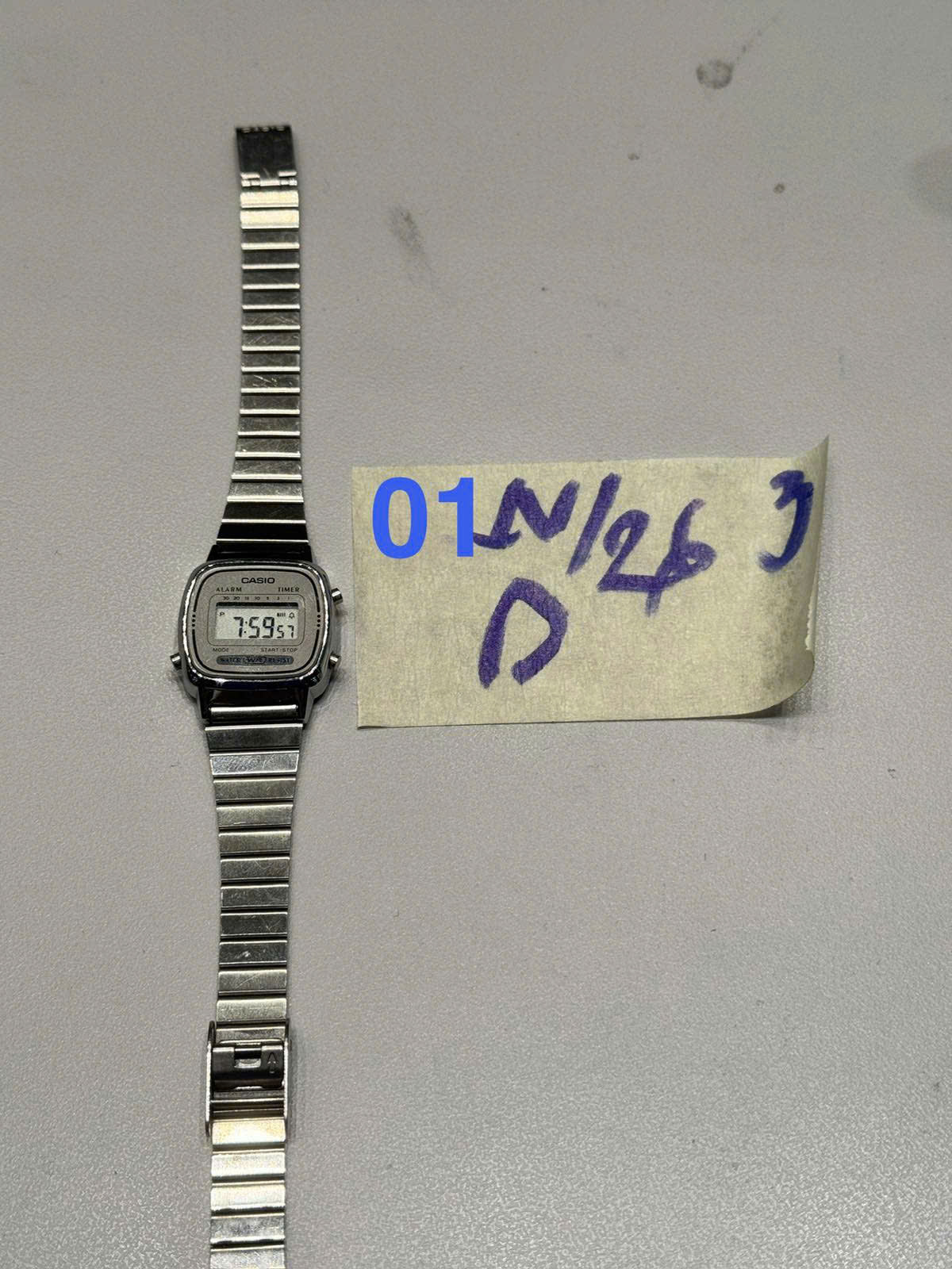 Ngày tiếp nhận: 01/01/2026 Mã hồ sơ: 01N2025D Mô tả: 01 đồng hồ màu bạc có chữ CASIO. |