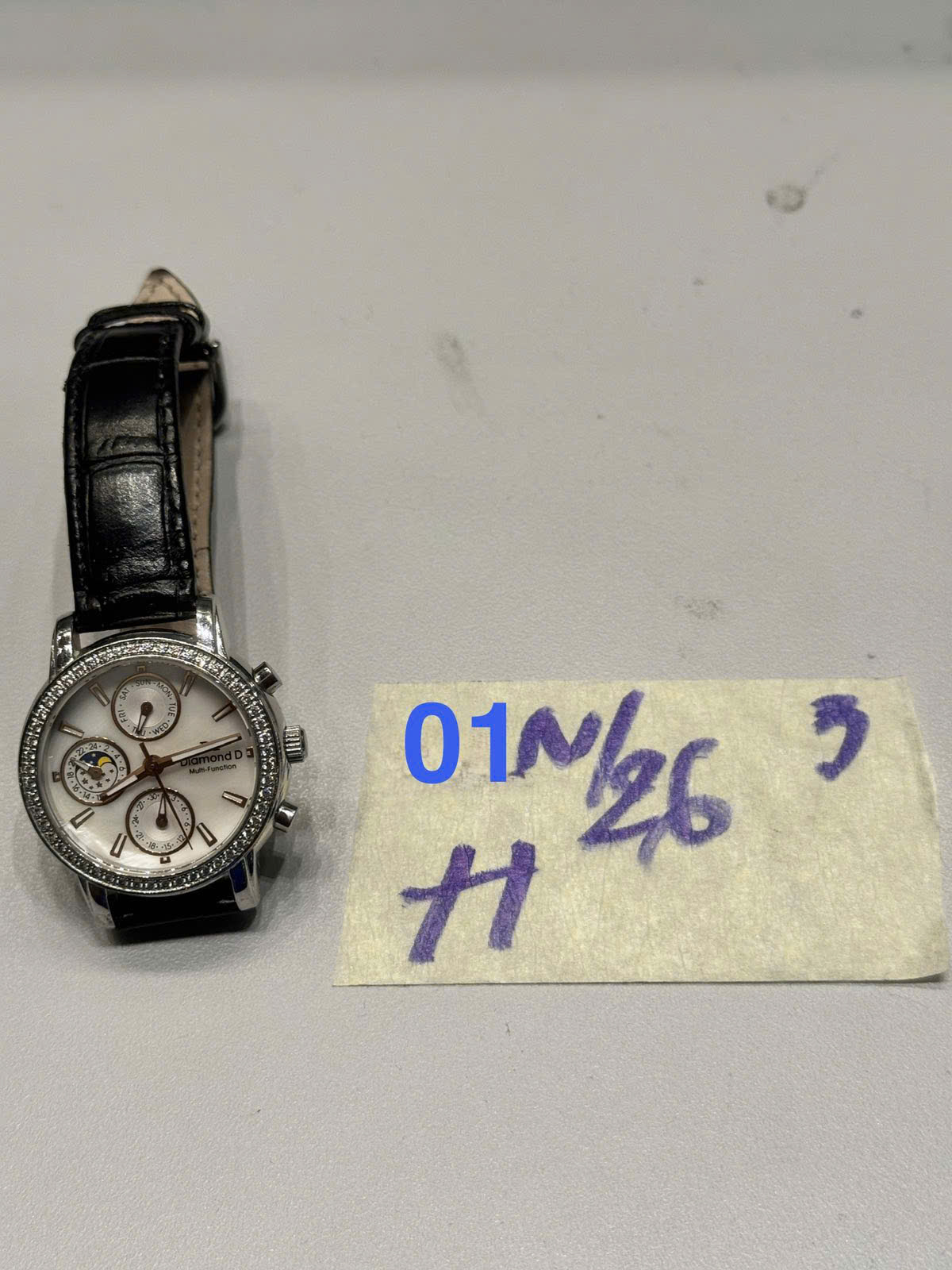 Ngày tiếp nhận: 01/01/2026 Mã hồ sơ: 01N2025H Mô tả: 01 đồng hồ dây da màu đen có chữ DIAMOND. |
