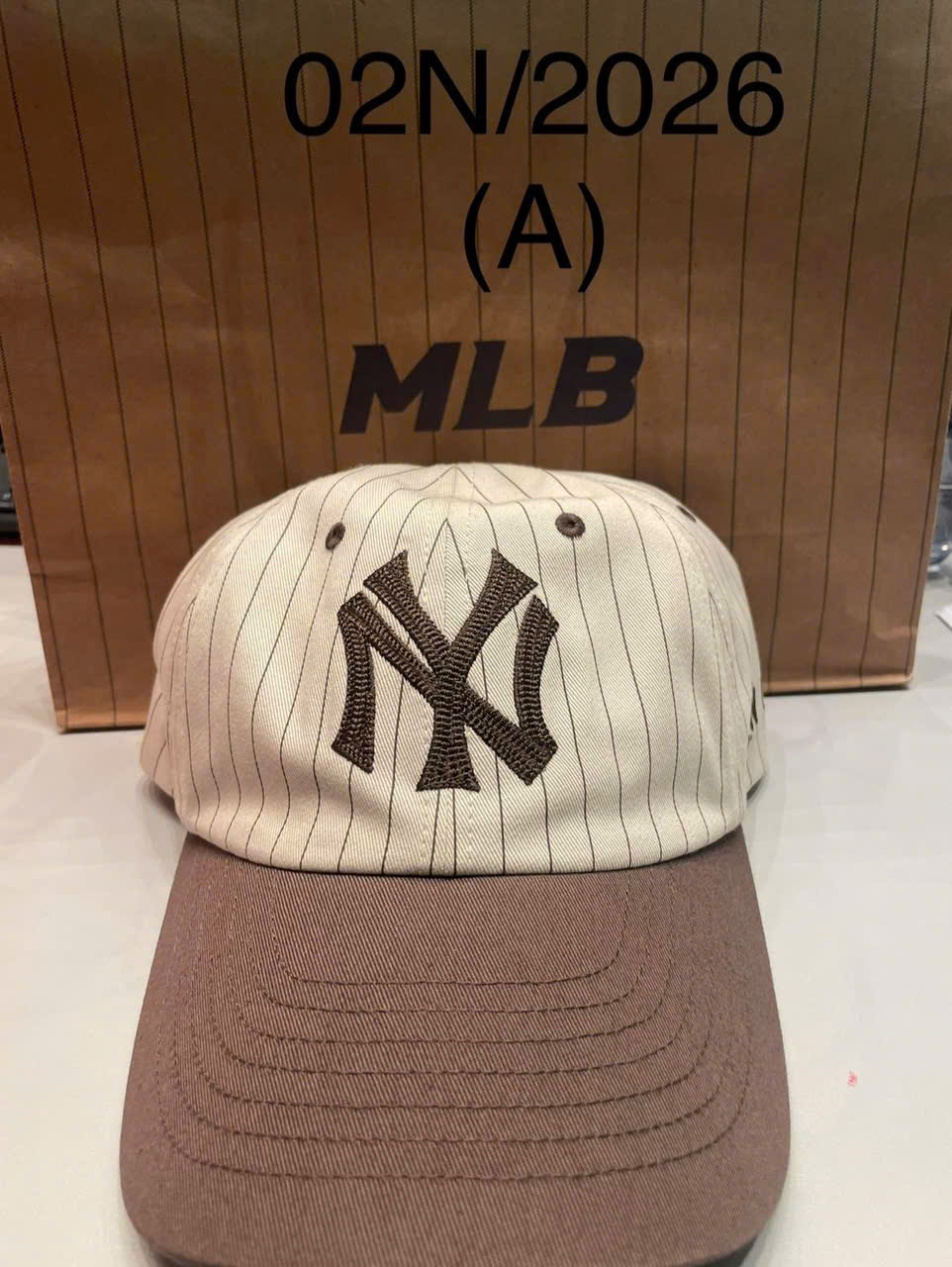 Ngày tiếp nhận: 02/01/2026 Mã hồ sơ: 02N2025A Mô tả: 01 túi giấy màu vàng có chữ MLB, bên trong có 01 nón màu trắng , sọc nâu có chữ NY. |